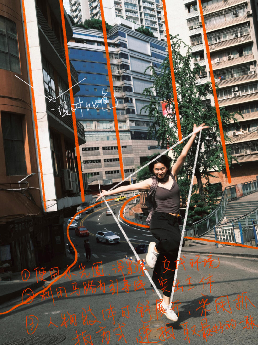 大家好我是独立摄影师娜娜,懒惰的我准备出教程了,不知道🈶️🈚️人看,如果大家感兴趣可以多多点赞收藏,也可以在评论区说出你们对于拍摄中遇到的问题,我肯定会知无不言 言无不尽的❤️🔥 每一座城市🚠都有它自己的特色,看到重庆现在的发展以及很多朋友们的喜爱真的很开心!!!🥳 热情的重庆永远在等你 📷拍摄器材:富士Xt-4&富士x100v 📸拍摄灵感:重庆独有的“城中有山,山中有城”的魔幻建筑特色,孕育了乐观向上的重庆人,所以想拍点快乐🥳的照片,把情绪融入在独特的建筑里!伴随着高高低低城市探索,希望你们也可以拍出留在这座城市独特的记忆!!🎞 👗服装选择:夸一下我滴模特青青真的超会搭配,背心配围巾🧣,简约又不一样,宽松阔腿裤方便大动作的跑跳,一双运动鞋更加轻盈(重庆爬坡上坎必备 💄妆造:需要一种自然而然的清透感,淡妆即可 📍拍摄地点:较场口轻轨站5号口右转100米