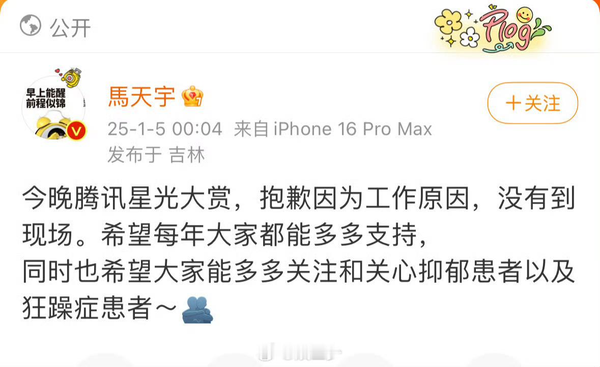 马天宇再回应 马天宇再回应 称自己也得过抑郁症 但自愈了 也称自己没有耍大牌 更没有迟到 不看剧本等 此前马天宇回应已删除