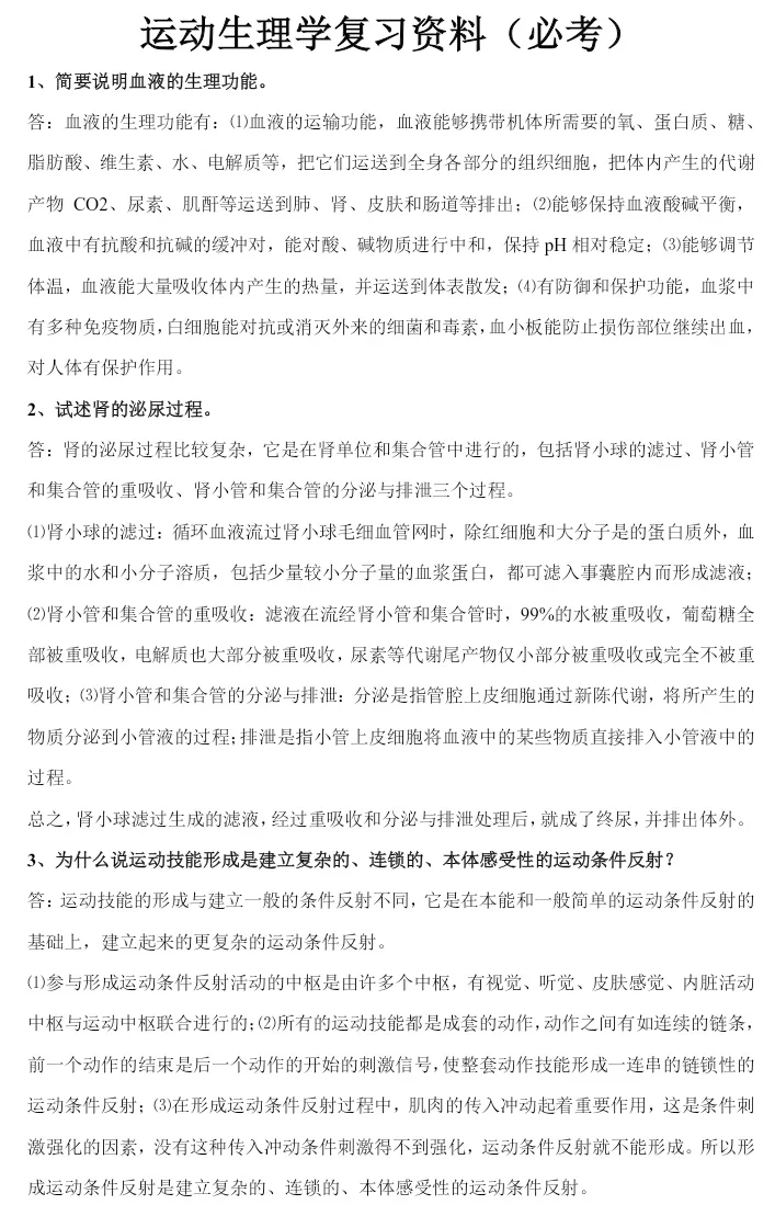 运动生理学 运动生理学知识点讲解 运动生理学期末考试重点 运动生理学题解 运动生理学题库 运动生理学期末考试题库 运动生理学考点 体育考研运动生理学 体育考研运动生理学