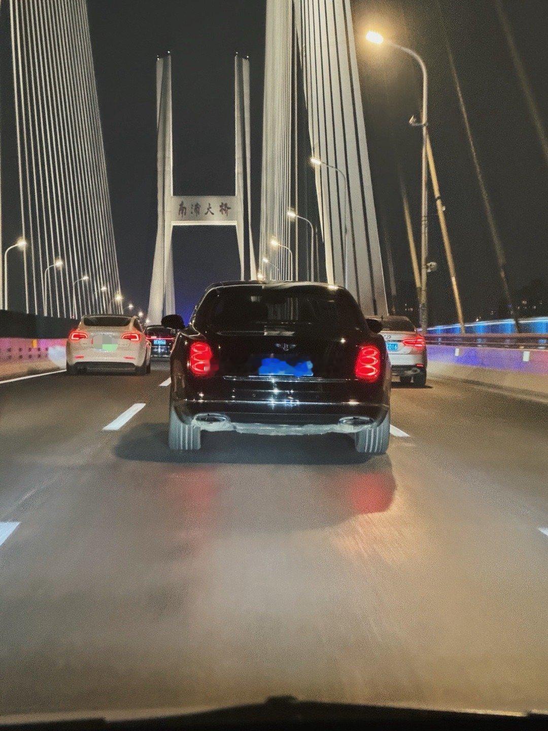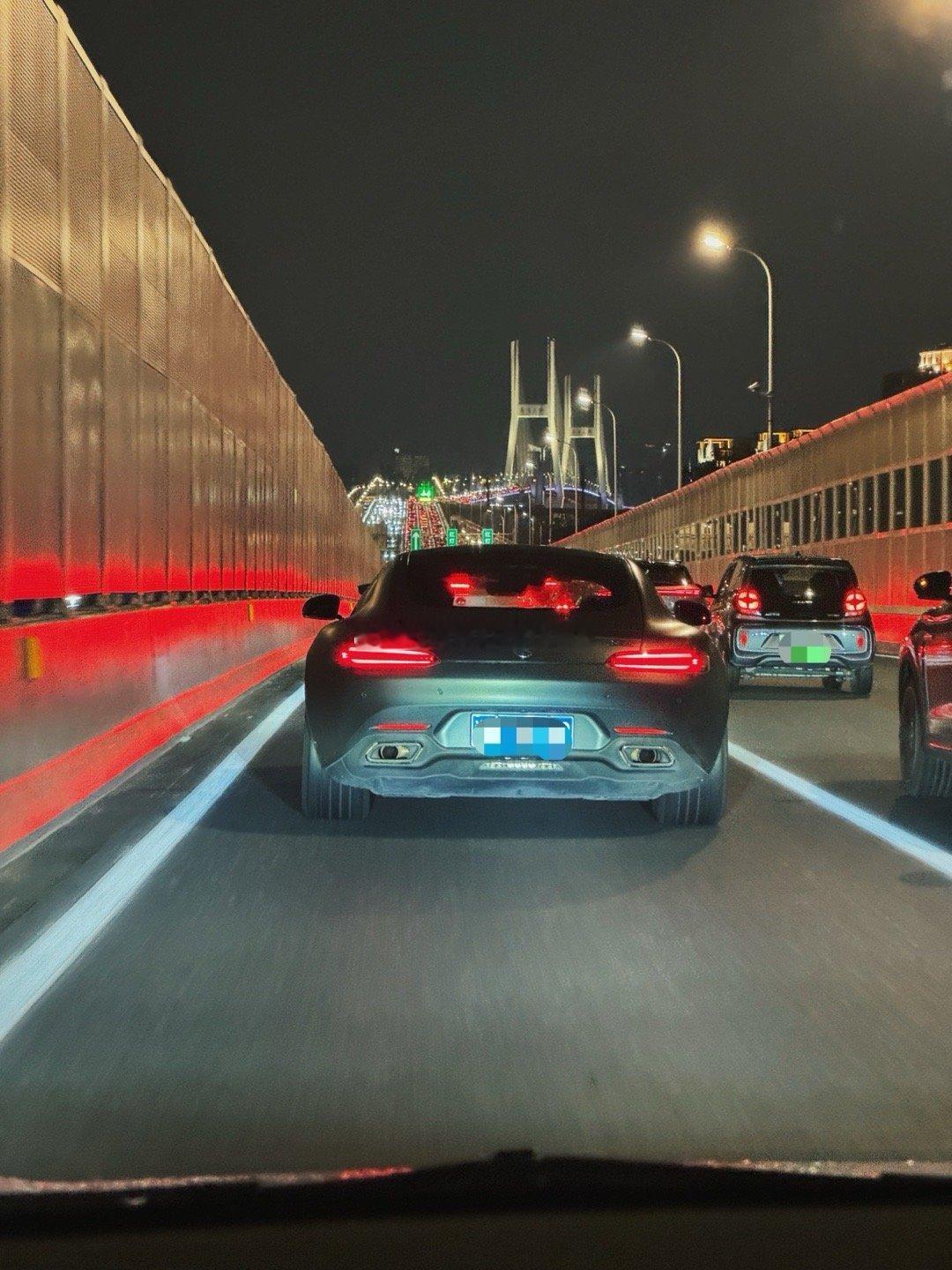 后视镜中突然出现一辆狠车,应该是史上最顶级前横置平台的车了吧?我就使劲喊韭妹让她