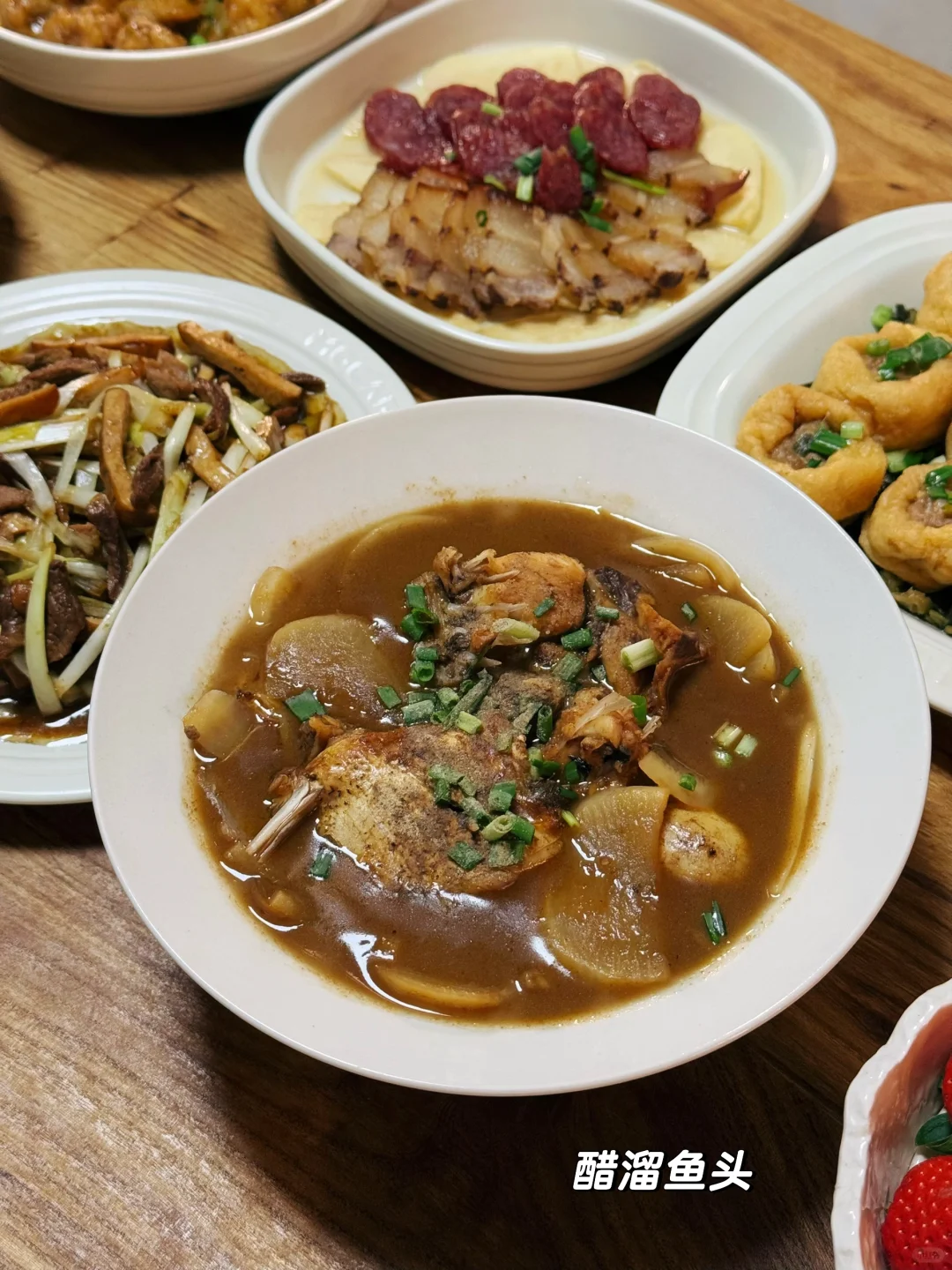 今日菜单: 1⃣️糖醋排骨 2⃣️醋溜鱼头 3⃣️雪菜油豆腐塞肉 4⃣️绍兴炒三丝 5⃣️青菜炒年糕 6⃣️冬笋腊味双拼 又降温了,过年的脚步越来越近,做了一桌菜,都是我们这儿过年餐桌上出现频率比较高的,分享给大家。