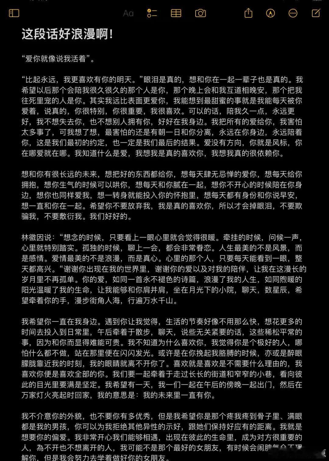 这段话好浪漫啊!爱你就像说我活着!