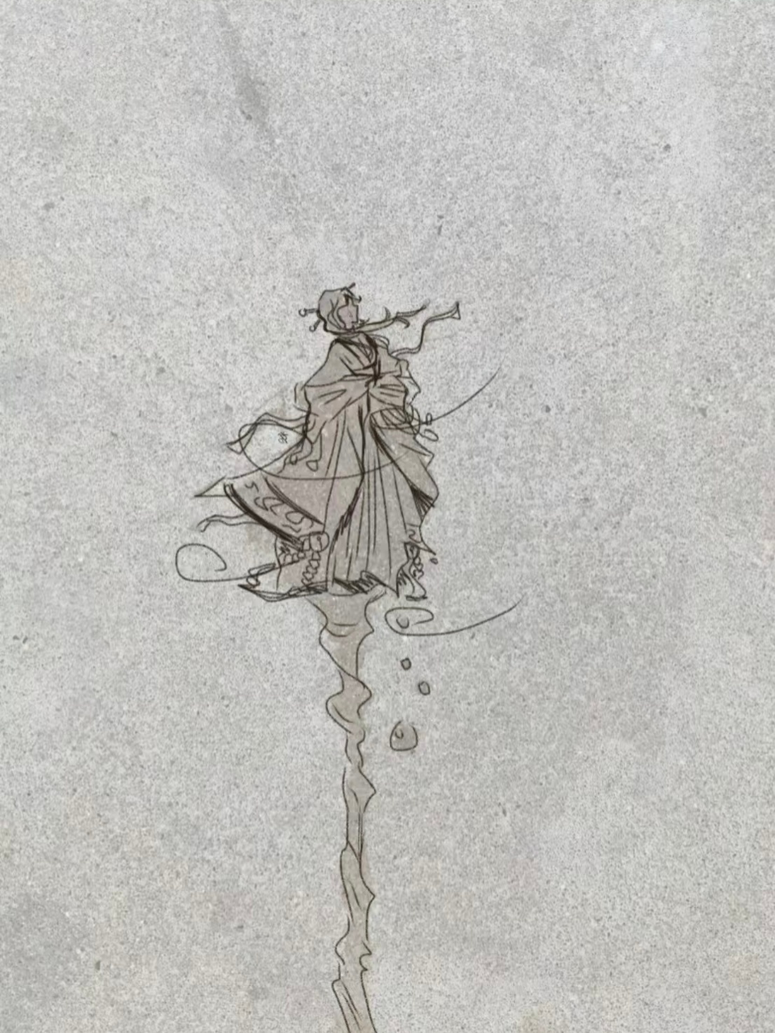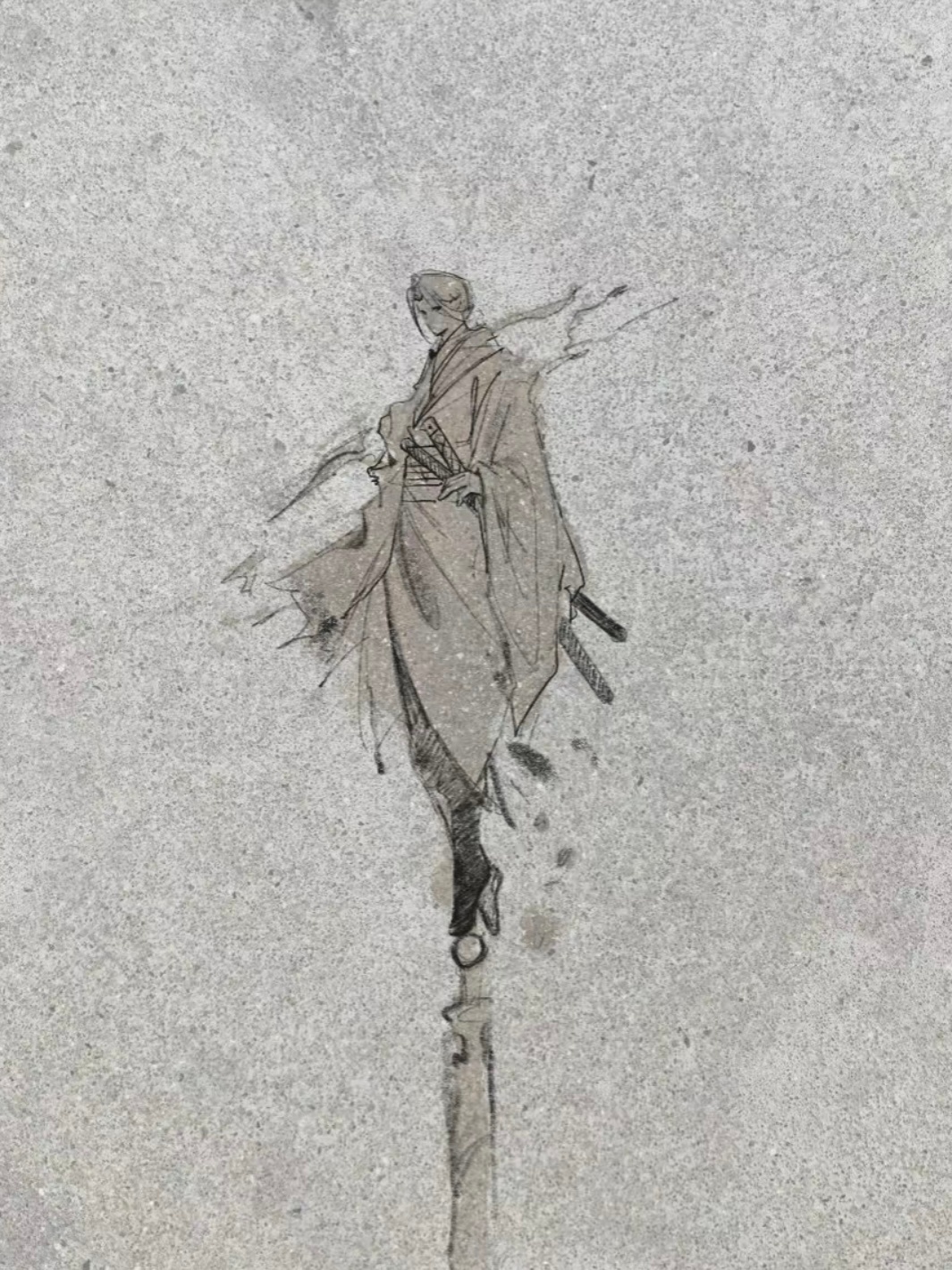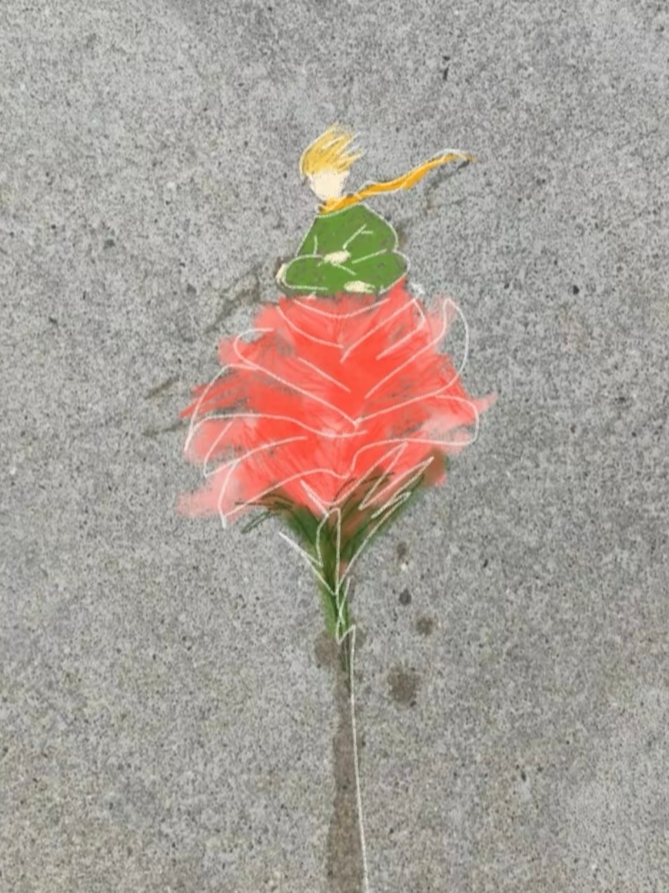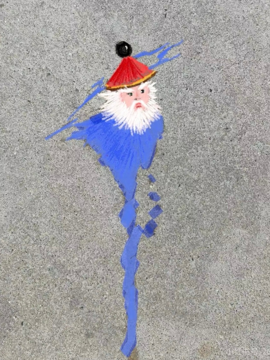 路上的水迹被大家画成了一幅画每个人都好有实力!