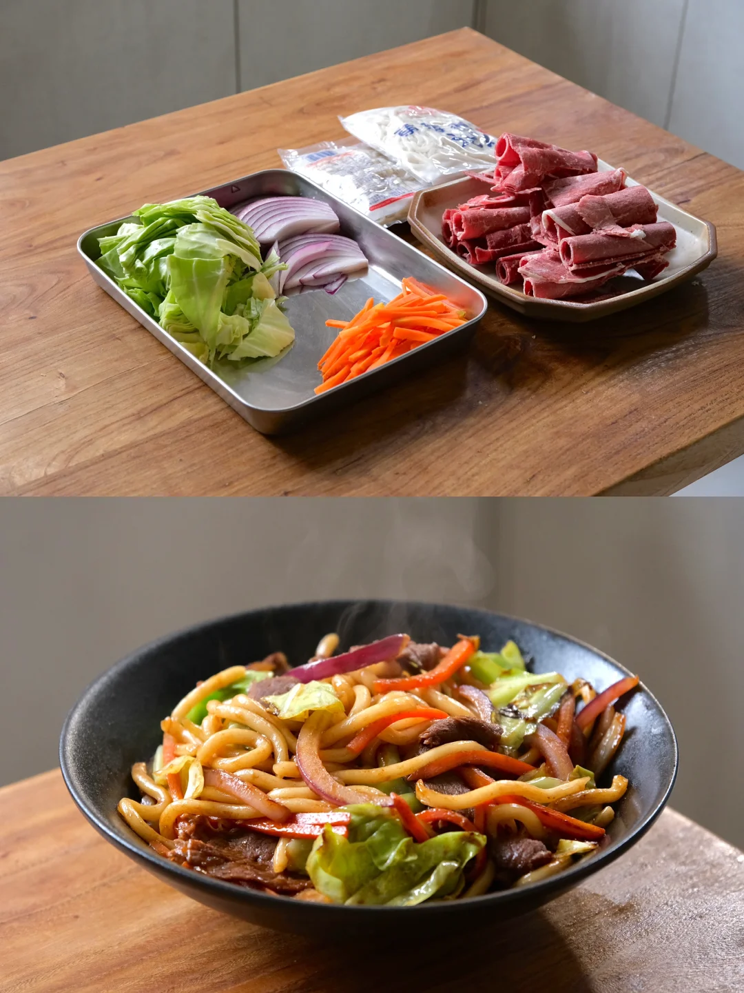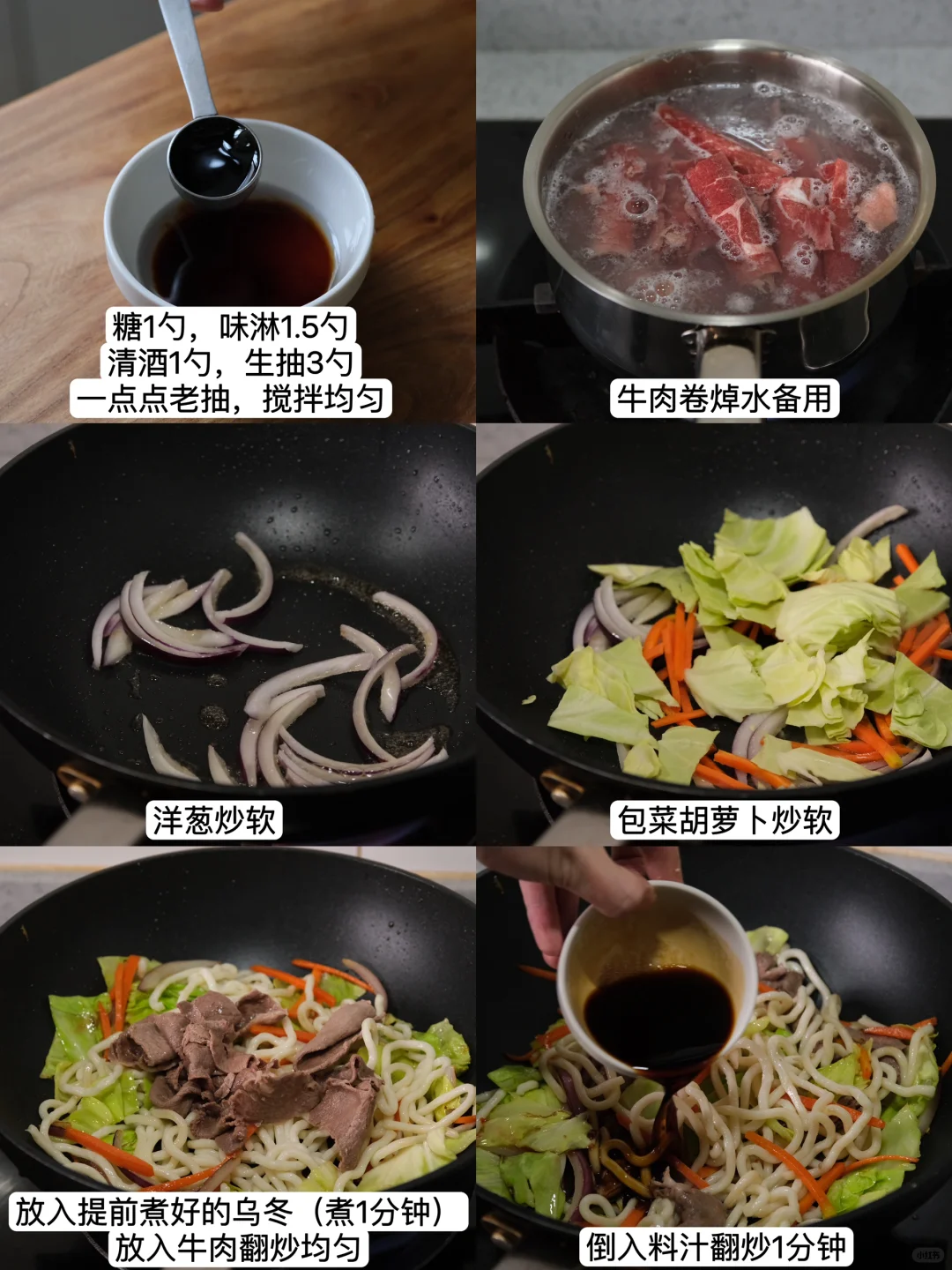 今日菜单: 牛肉炒乌冬面 荷包蛋用的是可生食鸡蛋 乌冬面这个料汁味道很不错 只可惜没出门买菜,牛肉不是很好 步骤图是一份的做法,方便大家参考