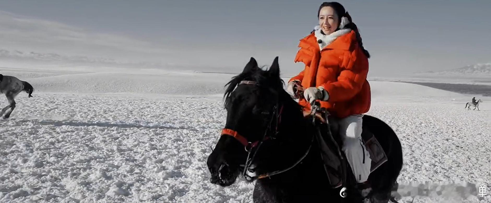 佟丽娅天马踏雪聆听自然的声音佟丽娅,马背上长大的精灵,在新疆的雪中骑马,仿佛瞬