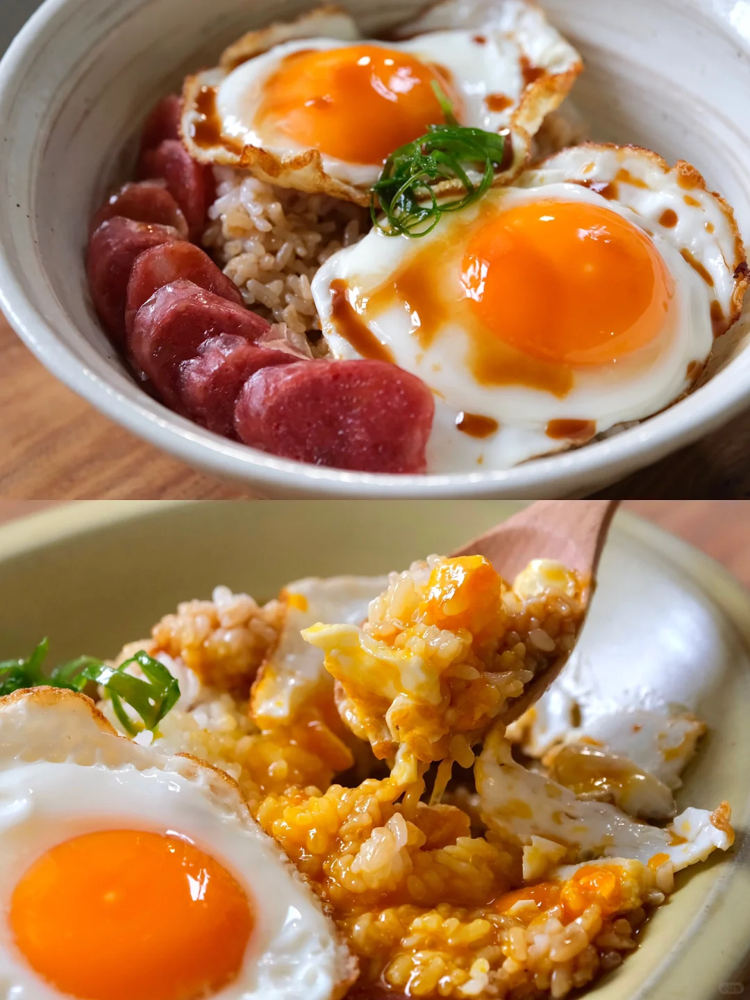 无菌蛋煎荷包蛋 糖醋汁 蒸腊肠 每一个听起来都特下饭 拌饭糖醋汁:3勺生抽、2勺醋、1勺白糖、1勺番茄酱、10勺水、半勺淀粉、搅拌均匀煮沸 腊肠直接和饭一起蒸,简单煎几个溏心荷包蛋 调个糖醋汁煮一煮淋上去,又是美美的一顿