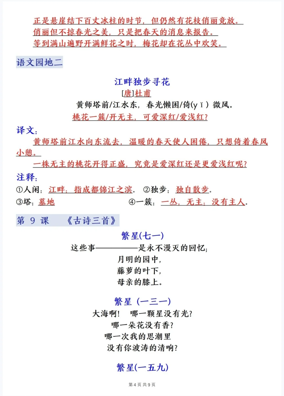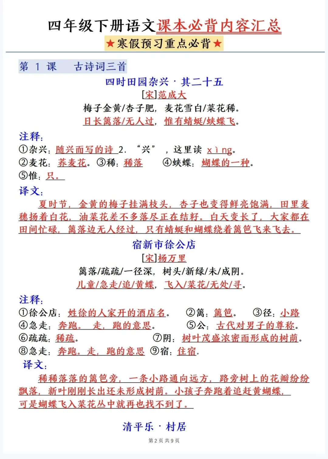 四下语文|寒假预习❗️❗️必背内容汇总
