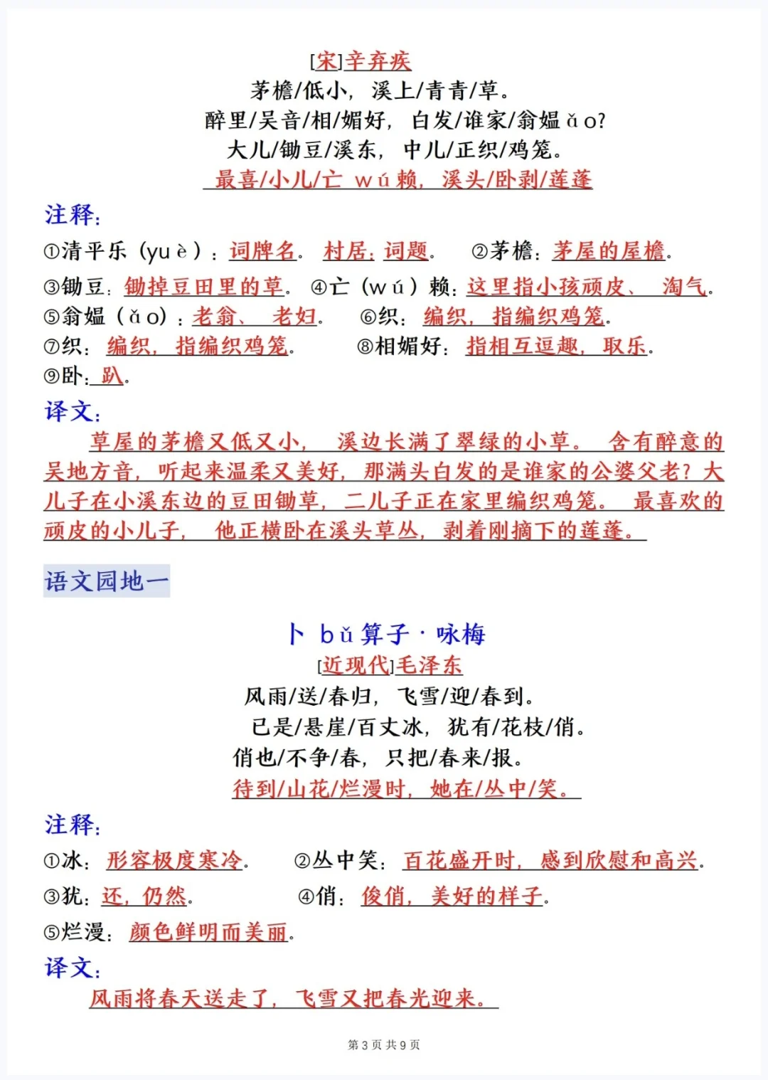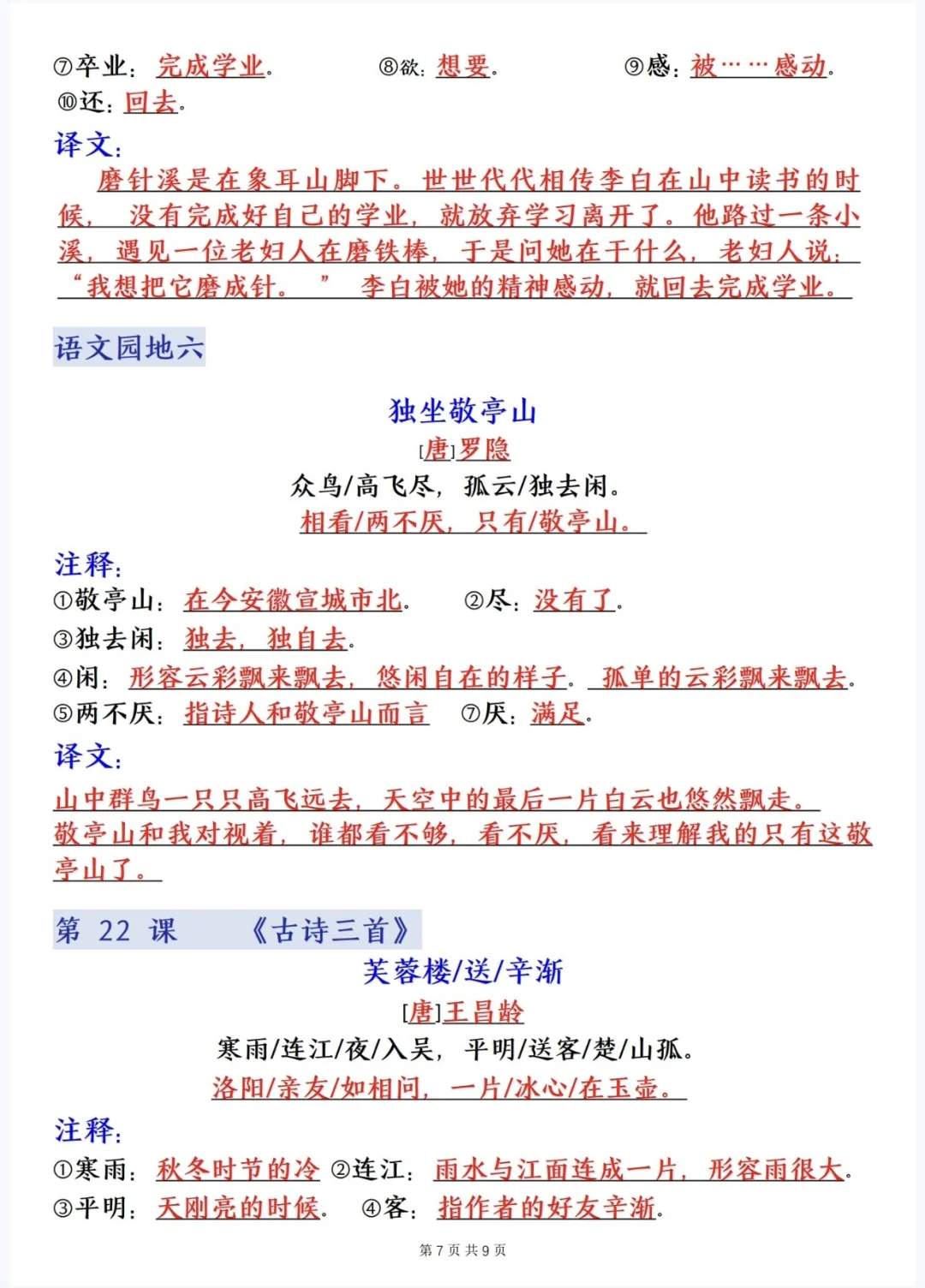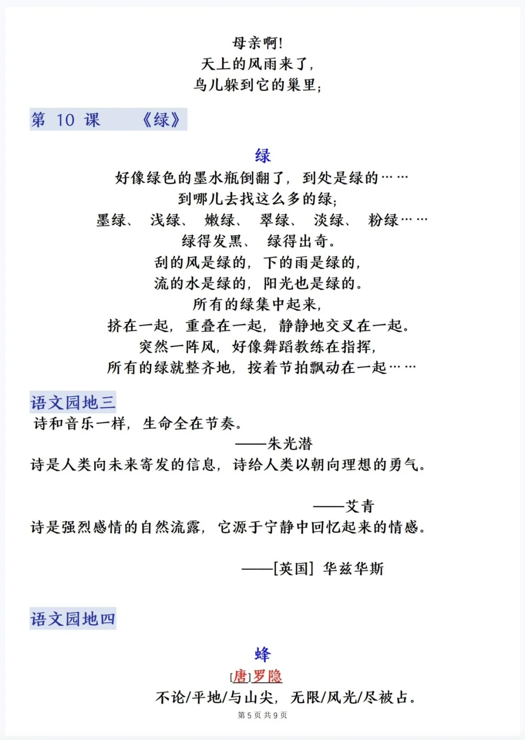 五下语文|寒假预习❗️❗️提前背诵内容
