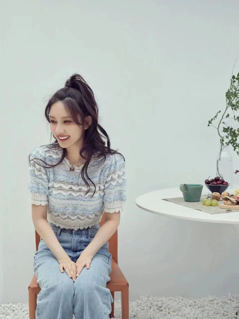 忽冷忽热的天气,实在太适合穿短袖针织衫了,孟姐的这套look真的好甜,温温柔柔的穿搭,既显气质又少女感十足。拼接针织上衣搭配阔腿牛仔裤,给人一种好乖好甜的感觉,而且时尚度也是刚刚好! 短款针织上衣搭配阔腿牛仔裤,时尚百搭,条纹肌理感上衣,视觉显瘦简约款式牛仔裤,时髦又百搭