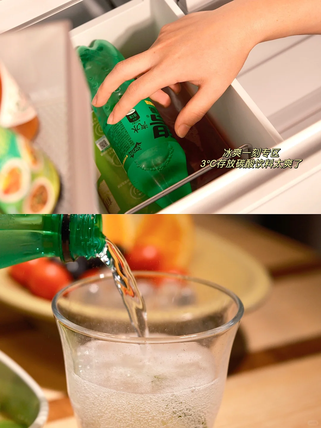 还有我最爱的冰爽一刻专区,饮料爱好者有属于自己的收纳空间太重要了。对了,卡萨帝冰箱还有一个很好的功能,它能够实时监控并主动感知食材存储变化,远程可视可控,还能同时实现六重高效除菌净化,恭喜我的饮料瓶再也没有鱼腥味。