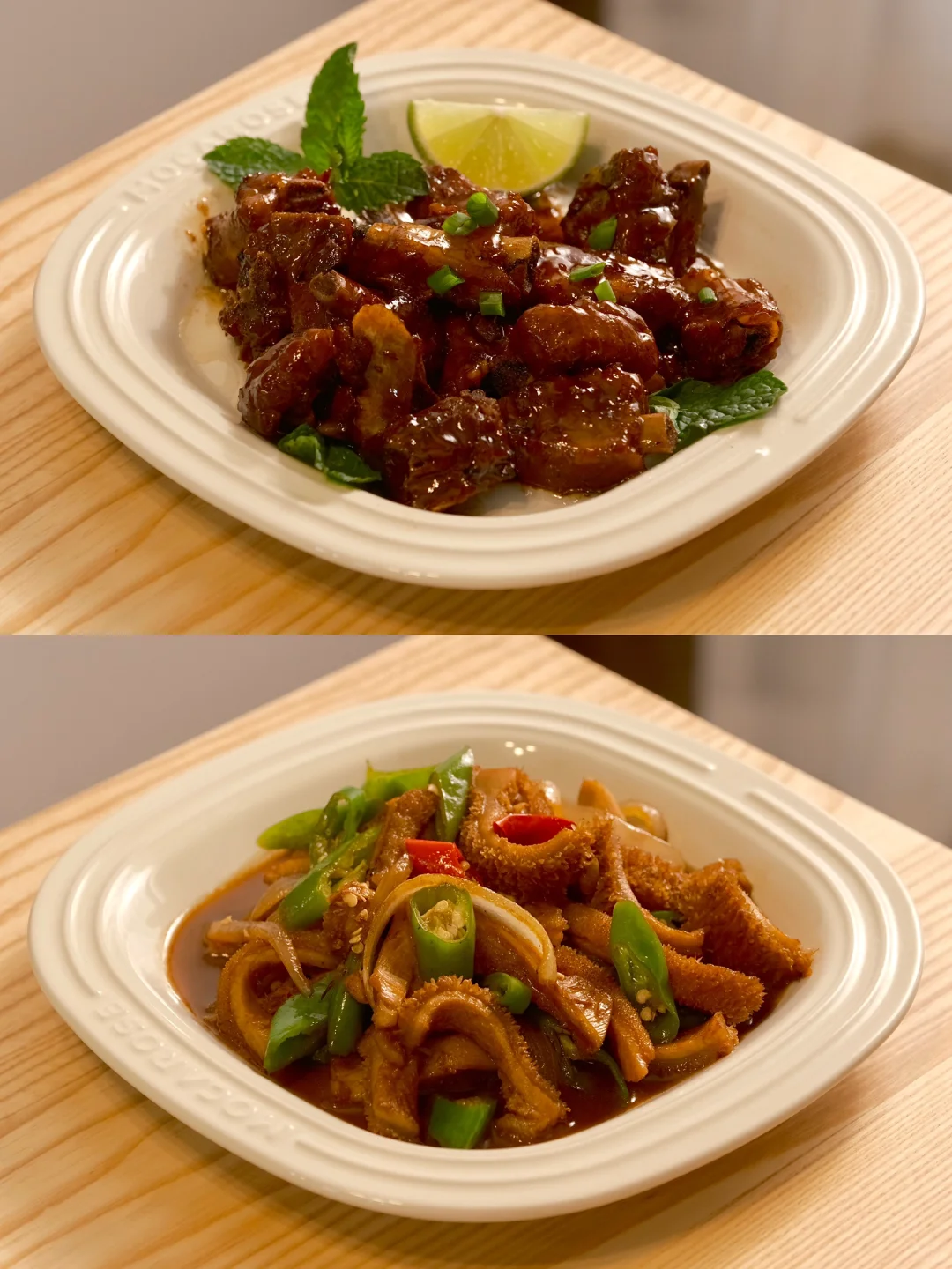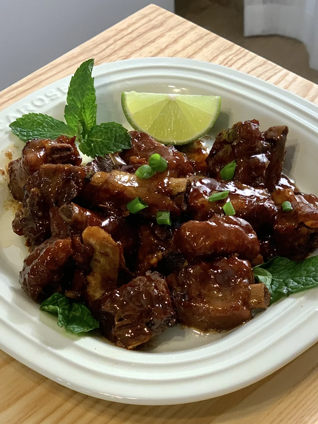 红烧排骨:今天的红烧排骨又被夸了,排骨焯水,放入高压锅中上汽压5分钟。另起锅,加入适量的油,放入冰糖炒出糖色,加入排骨翻炒,放入两勺生抽,一点点盐翻炒均匀,加入开水没过排骨,放入八角香叶,煮5分钟,再开大火收汁到浓稠即可。