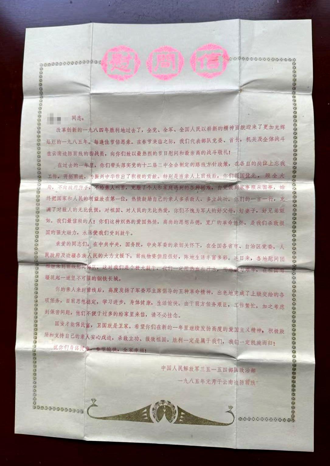 永生难忘——四十年前的春节我刚从炮火纷飞的老山战场撤下来,幅幅场景,刻骨铭心。1985年的春节,我们济南陆军学校代职参战学员队是在麻栗坡县北邻文山州军供站度过的。1985年2月14日,我们学员队完成参战任务,奉命撤离老山各阵地,与同一战壕1军1师的生死战友挥泪告别。当晚我们在老山北侧南温河集中并宿营,2月15日乘上卡车,一路风尘仆仆到达文山壮族苗族自治州军供站休整(见图1)。我们学员队共有学员和带队干部64人(见图2),此时少了多人。盖因在残酷的攻防战斗中,我队学员李法堂阵前牺牲(见图3)、数人负伤在住院治疗,对此大家的心情都十分沉重,过年的喜庆劲也淡了许多。2月19日除夕夜,央视春晚上军旅歌手董文华、柳培德一曲《十五的月亮》,唱得我热泪盈眶,百感交集——痛惜英勇献身的战友,难舍并肩战斗的兄弟,思念远在家乡的亲人……那个春节,云南省政府、昆明军区、1军及1师给参战官兵发了慰问品,给后方军属寄了慰问信。战斗纪念册上的83011部队是1军的代号(后改为35151部队),1军战时番号是14军甲;慰问信上的35154部队则是1师的代号,1师战时番号是41师甲。四十年已去,正如慰问信上所言:“国安才能保民富,卫国就是卫家”,当年我身为中国军人,能赴南疆参战护卫一方百姓的平安,乃一生之幸也。大漠单骑/文·图(抄袭必究)