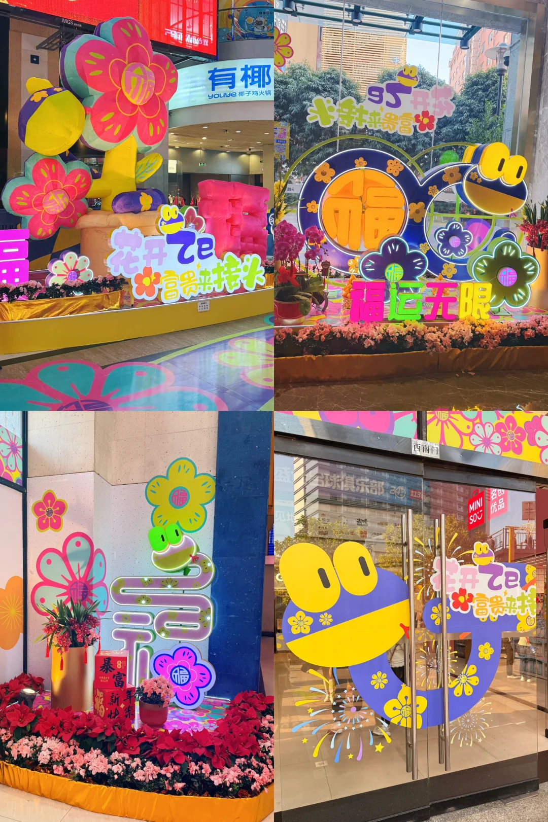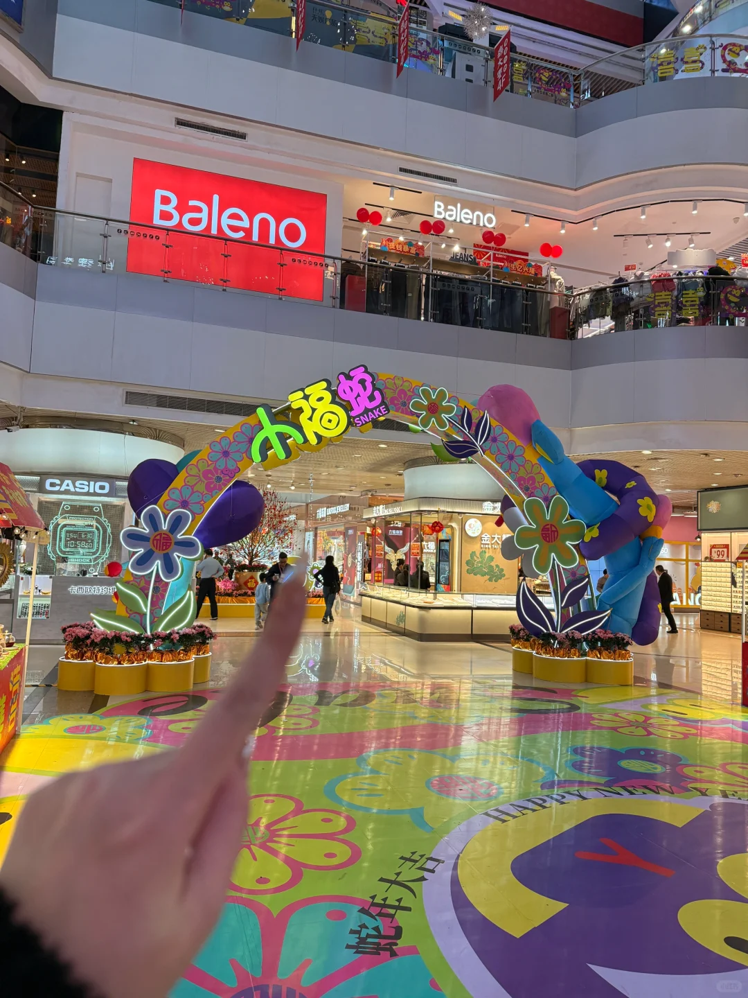 🎊美陈打卡:即日起至2月16日,“花开乙巳,富贵来接头美陈展”,萌趣福蛇超吸睛,随手一拍就出片,新年氛围感拉满!