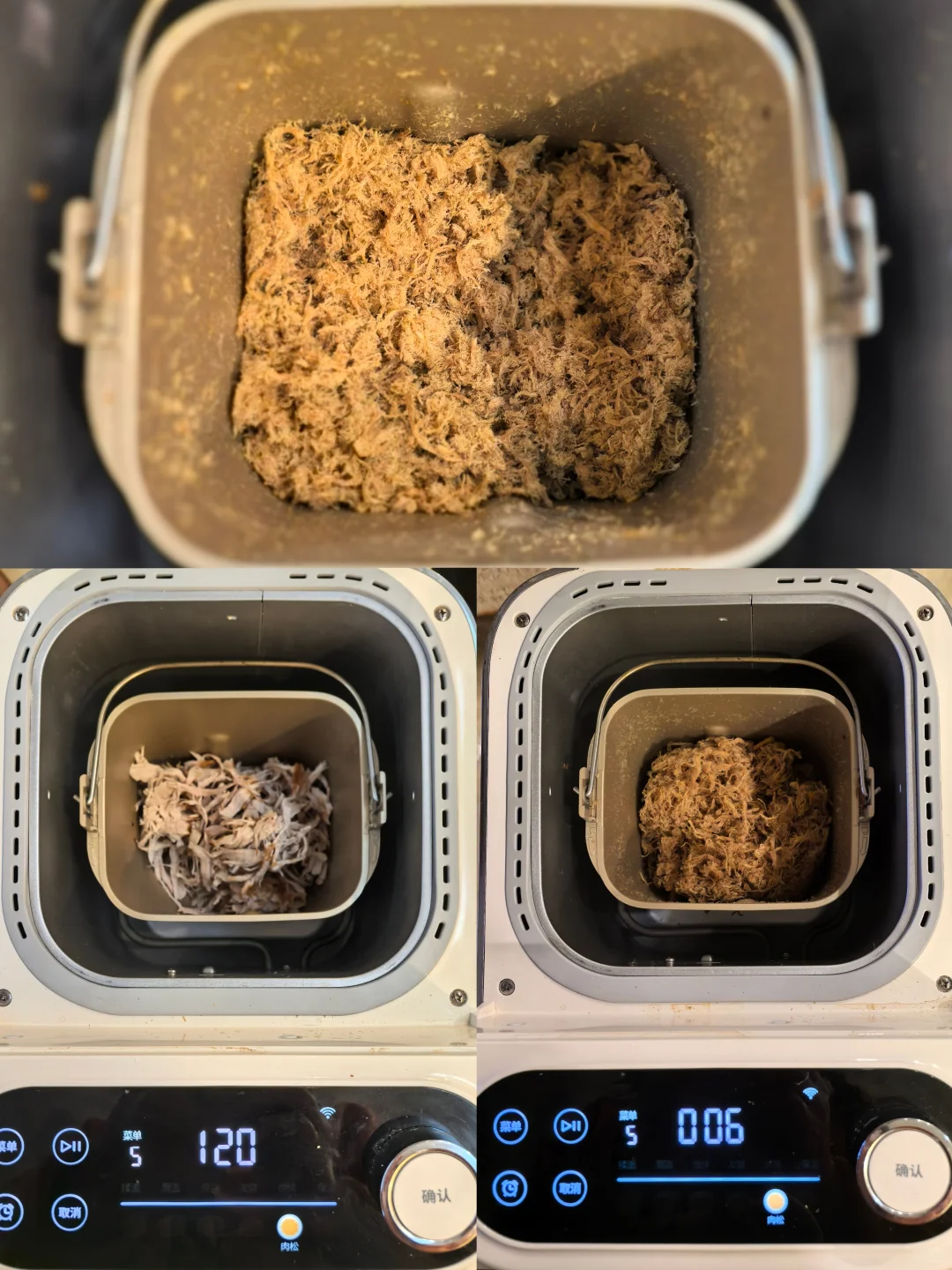 面包机一键就能做出蓬松酥脆、无添加剂的肉松。