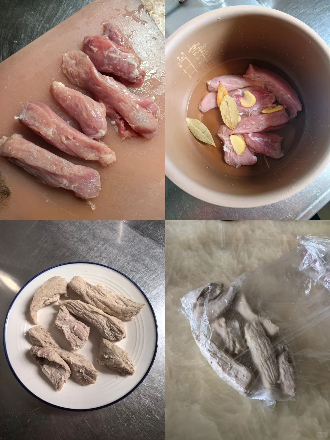 2. 用高压锅或者电饭煲,下肉和调料,水没过肉,煮1小时左右。