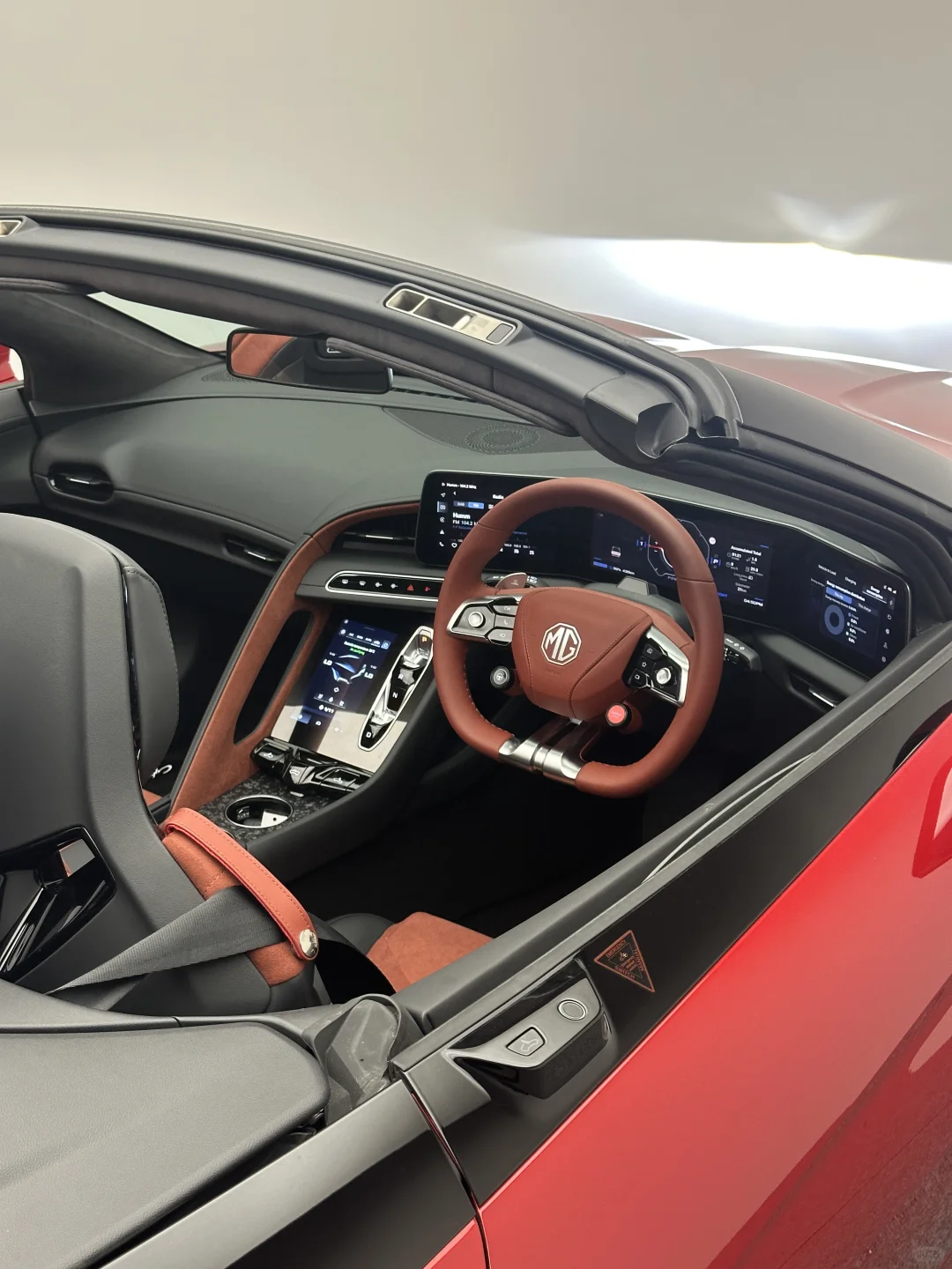 🎁第一台预定的MG Cyberster终于到了,客人趁着出国旅游之前来提车 昨晚下班后专门坐车里学习了老多细节,虽然很多系统和其他新款MG类似,但是整体四个大屏幕还是很烧脑的 客人也是特兴奋,从最初聊天下定到现在已经是快半年的事情了,客人的爱人也是相当满意,聊天中得知他以前一直开着一台全新西兰第一批的特斯拉Model S,这台车他也会天天开这个车上下班的那种,真拉风! 不过就是我到现在也都还没有开过这台车上路[失望R]国内没开过,到新西兰也没有Demo车可以开,只能等以后了