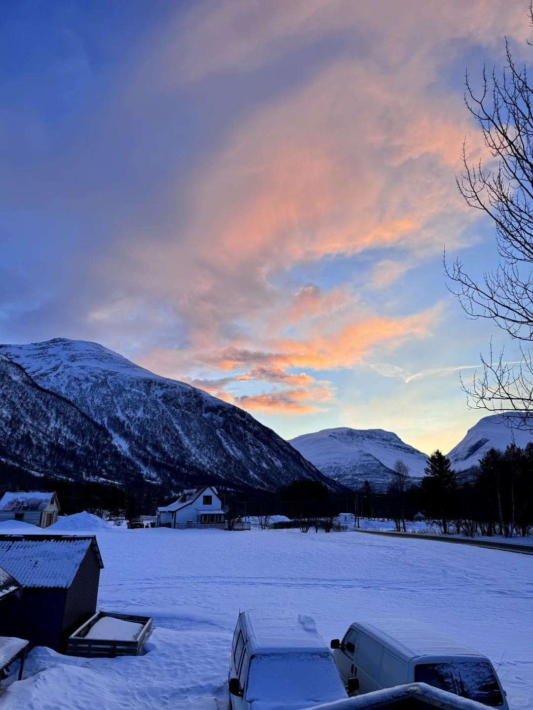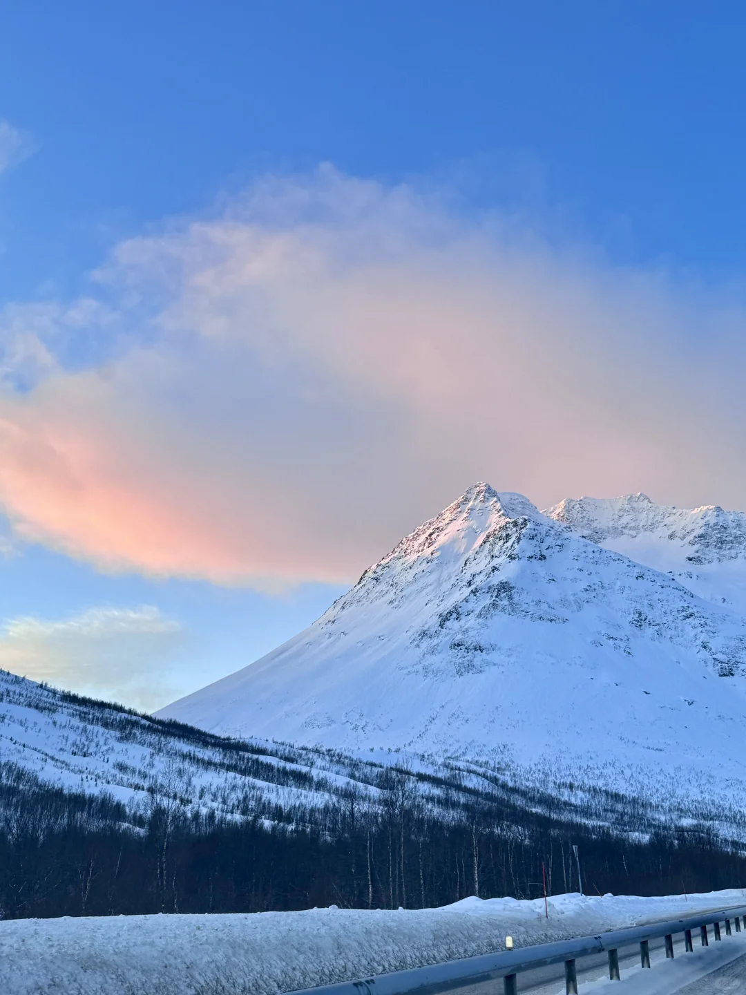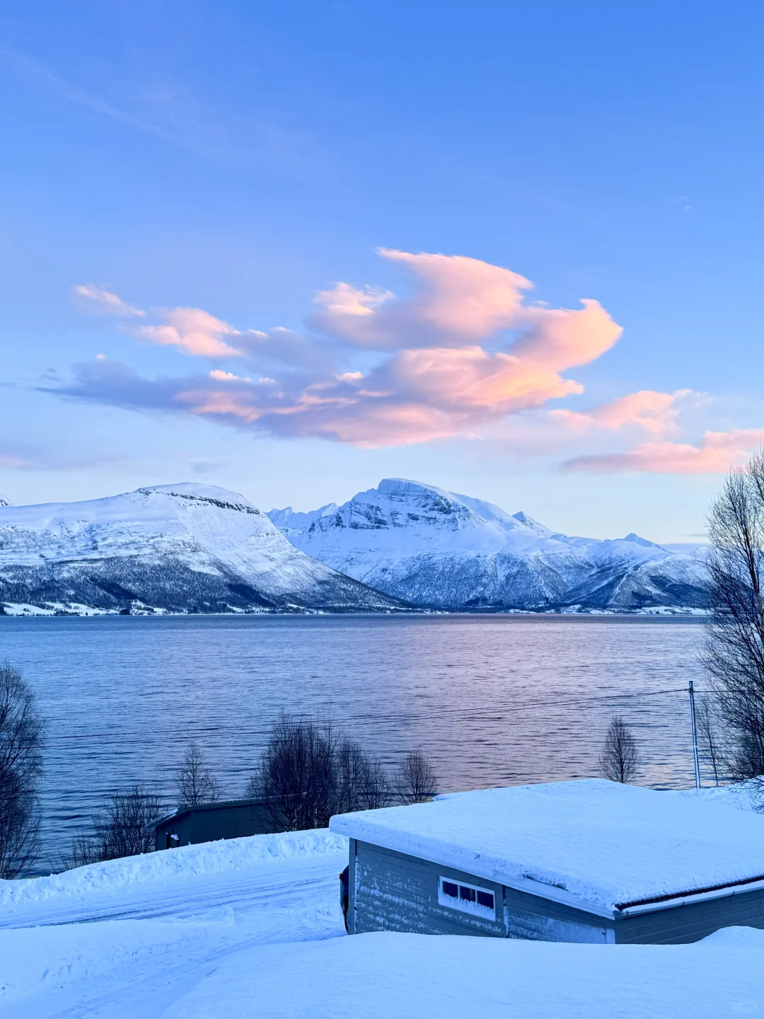 极夜过去~~白天越来越长, 冬季也不是太难熬~! 挪威北部的峡湾美上了个新台阶! 雪山和白云 都被阳光染成了粉粉的金金的 而且最近的晴天也是经常有!🤩