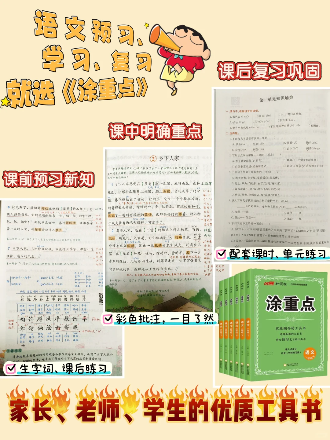 🌈马上就要开学了,如果您家娃上课爱走神、课下写作业慢、出错率高,赶紧入手这套涂重点,课前高效预习,放学后用它及时复习,巩固课堂知识,语文成绩90+不是问题!👍👍