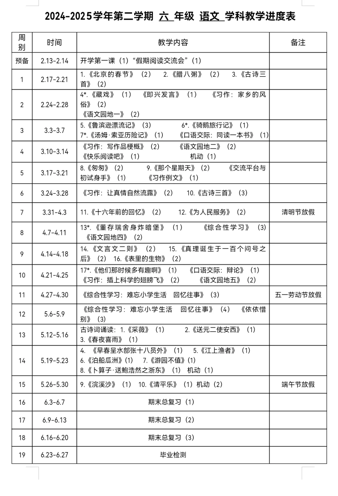马上开学了,整理好教学进度表和语文教学计划了,需要排版好的word的老师,点赞置顶笔记联系客服领取,无偿!!!记得先点赞置顶笔记哦!!!