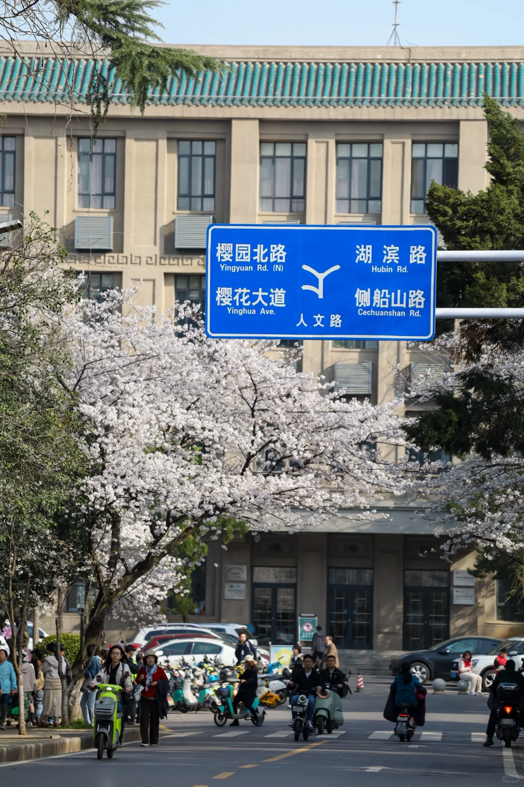 核心赏樱区域,全长约600米,途经樱园老斋舍、鳃鹏广场等地不爱非常壮观