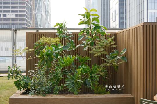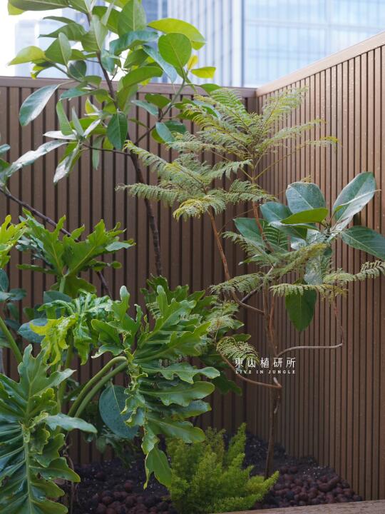 办公空间户外植物造景 考虑到场地的日照环境 以耐晒的植物为主 易打理低维护 不同的植物 营造层次丰富的绿意空间 Plant design:東山植研所 ___