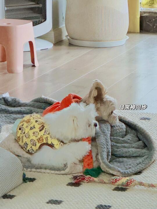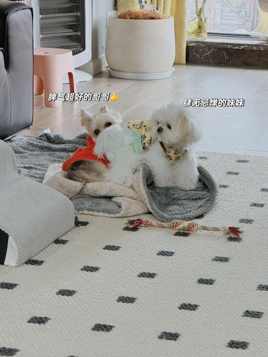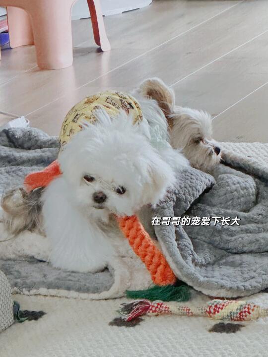 不管是人还是动物,妹妹就是值得被宠爱~ 爱在一起长大 约克夏 马尔济斯 打打闹闹中长大了 有爱的一幕 狗狗 宠物有爱瞬间