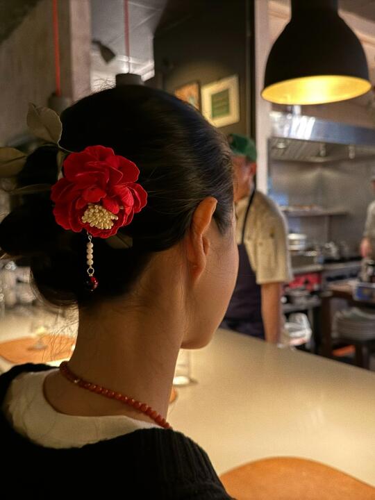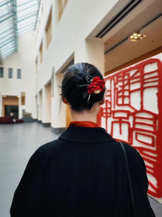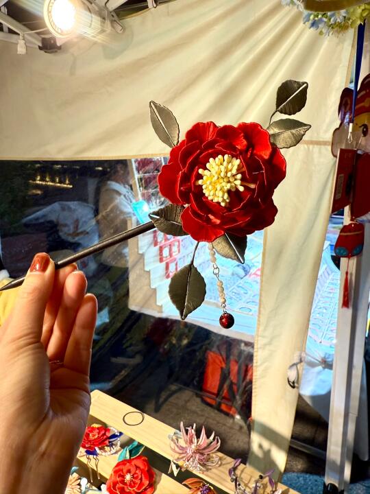 美女气质好搭大红色缠花我年前去的时候也想买红色系的缠花,可惜那个摊位的姐姐说要等下周