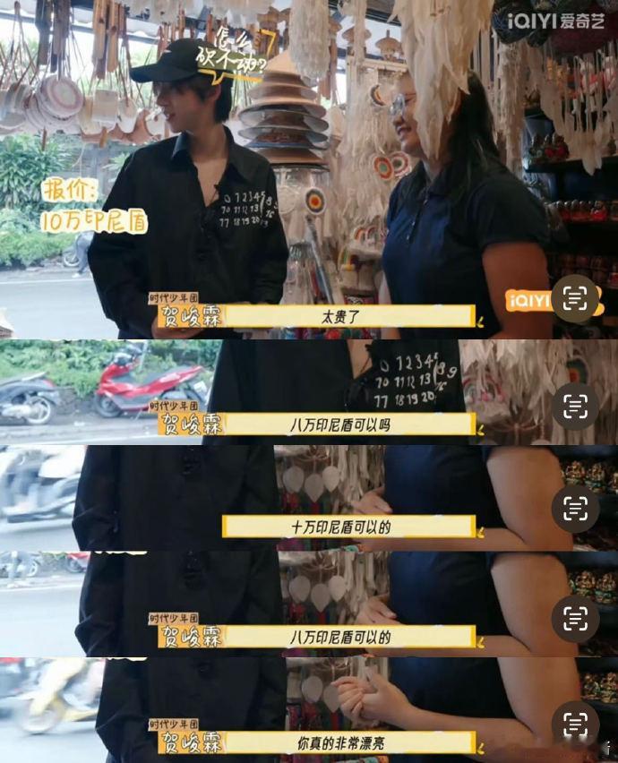 贺峻霖被印尼的砍价路数整不会了 好好好意犹未尽甚至觉得还砍少了是吧?贺峻霖明明都大着胆子在对半砍了,结果发现店主还是一味的ok?!怎么就这么轻易成功了呢?这跟别人家的砍价套路完全不同呀
