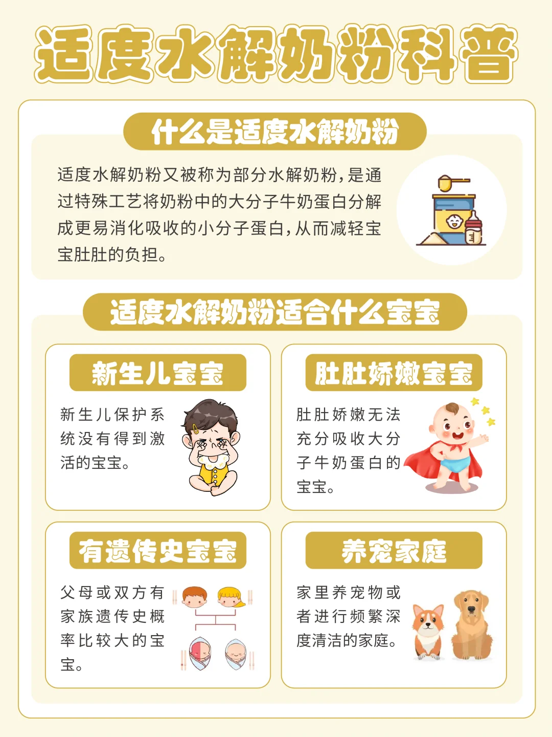 新生宝宝吸收功能还没有发育完全,因此选对奶粉,对宝宝的成长尤为重要。按照我的经验来看,可以试试适度水解奶粉,相比起普通奶粉里的大分子牛奶蛋白来说,适度水解奶粉里被水解后的小分子蛋白更适合宝宝吸收,可以减轻肚肚压力。