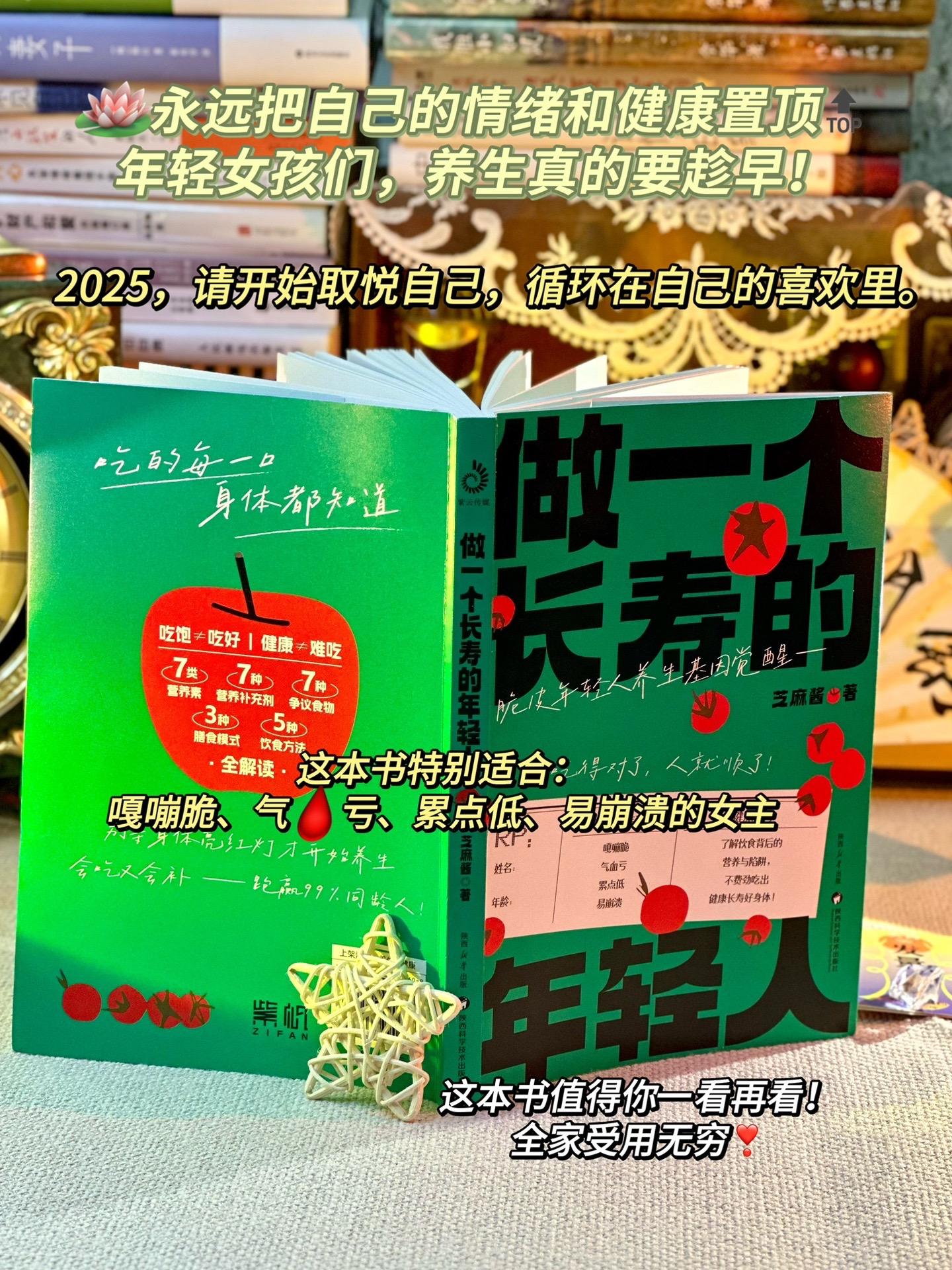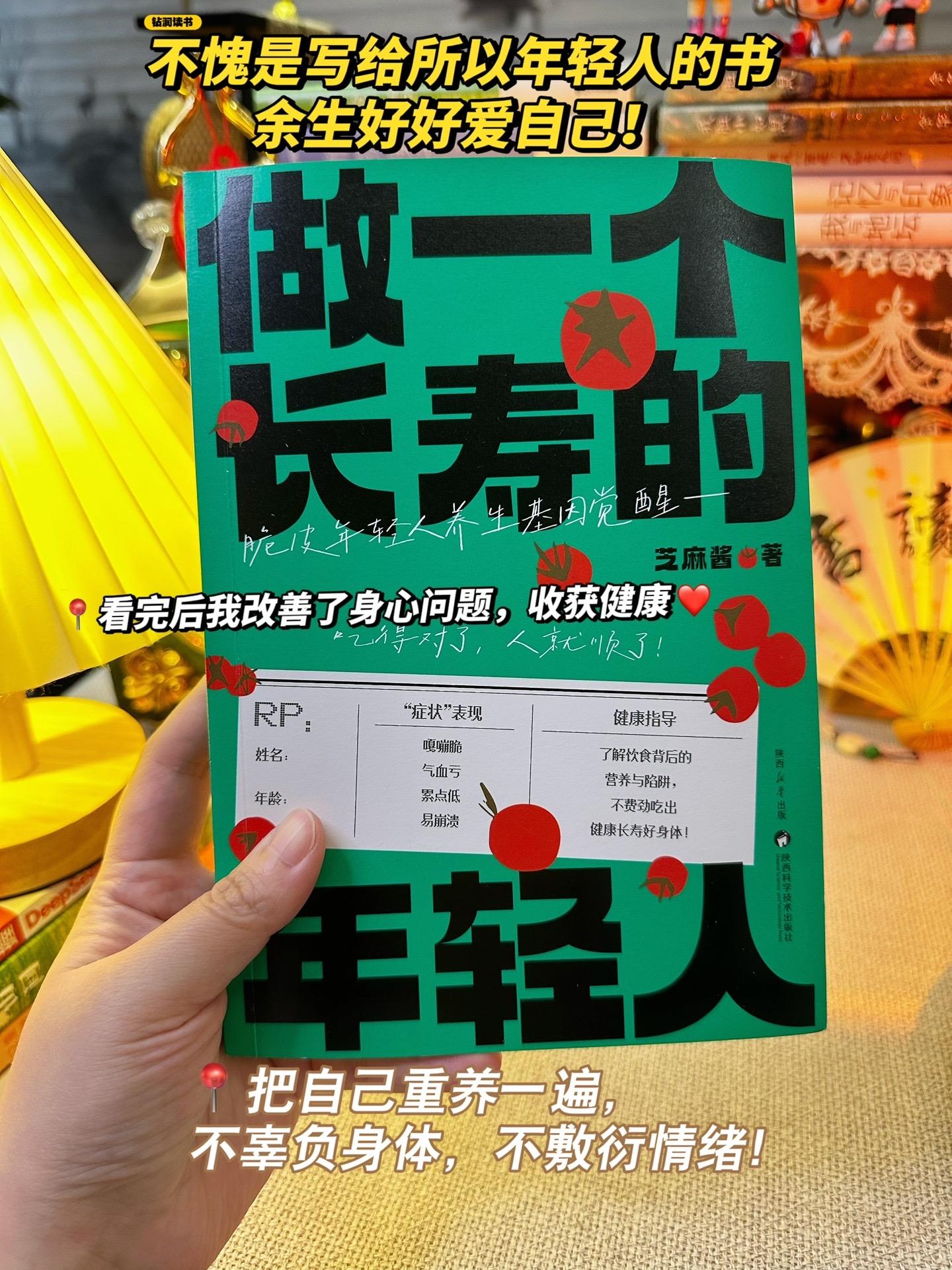 不愧是写给所有年轻人看的书!。书名:《做一个长寿的年轻人》 作者:芝麻酱,十二年健康科普作者 推荐理由:这是一本真正能改变你人生状态的书! 爱自己的方式有10000种,但首先要爱惜自己的健康! 这本书是营养师芝麻酱写给当代脆皮年轻人的健康生活方式。全书从健康认知、营养陷阱、饮食安全、养生方案等多个维度,帮你完善饮食计划,远离各种常见疾病,激活身心活力,科学养生。看完才知道,原来健康体质是吃出来的,情绪稳定也是吃出来的! 翻开本书,不辜负身体,不敷衍情绪。把自己重养一遍,会吃又会补,做一个长寿