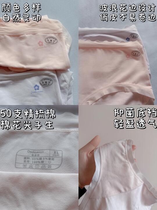 朋友推荐的关晓彤代言的内衣品牌—朵朵棉,我入手了这款纯棉内裤紫丸子装,(PS:它家还有好多款丸子包装的内裤,我先买了这款),像这种独立包装的内裤,干净卫生,方便收纳,内裤是纯棉的,但不是普通的棉质,是织入了进口莱卡纤维的棉莱卡材质,非常有弹性,我穿着很舒适也不勒,腰边还是波浪花边设计,时尚点满。穿完后立马下单了其他颜色,好穿不说,还是7A抑菌的,底裆还是100%棉裆,这对于女孩子来说是非常贴心的,真的是做到了既舒适又自然健康。所以我又入了它家的一款内衣,花瓣泪款的命名,原来文胸上围是波浪花瓣的设计,文胸还有茉莉花香,佩服设计师的灵感,设计出这么一款美丽动人的宝藏好物。W型果冻胶条软支撑,舒适承托,侧收副乳,立体贴合不跑杯,非常舒适!对于大胸女孩来说,选择舒适又有型的内衣真的是一件很头疼的事情,这款内衣最打动我的点是穿上无敌舒服,整个身心仿佛被棉花糖包裹着,甜蜜又温暖。入手的两款商品我都很喜欢,真的非常推荐,简直是宝藏品牌,爱了爱了!