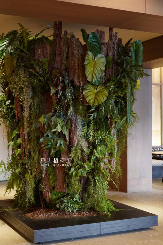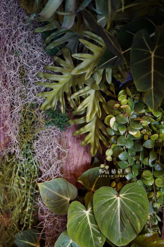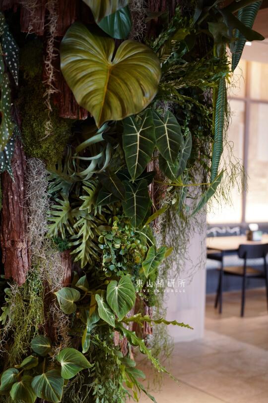 餐厅绿植装置 用3米高的绿植装置展现热带雨林的层叠生境 植物错落有致地攀附生长、异形叶片层叠交织 藤蔓垂坠的立体动线形成丰富的视觉层次 以沉浸式生态叙事重塑空间 仿佛将热带雨林的勃勃生机浓缩于此。 Plant design:東山植研所 Venue: 阿那亚•三亚 ——