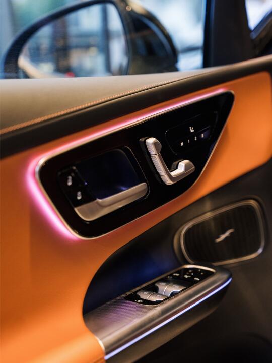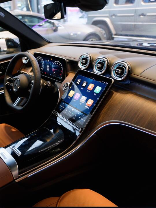 同级最长的2,977mm轴距 实现同级领先的61.69%轴长比 - 车内有大面积的木饰 特殊设计的空调风口、氛围灯等 在豪华感和质感方面都是GLC的强项。 - 🚀2.0T+48V轻混动力悄然唤醒, 山野与都市皆是主场。 智能四驱轻松征服弯道, 柏林之声音响[搜索高亮]让每段旅程自带BGM🎵 [勾引R]现车在店,戳我了解更多哟~ 解锁你的「黑棕高光时刻」✨ GLC 奔驰