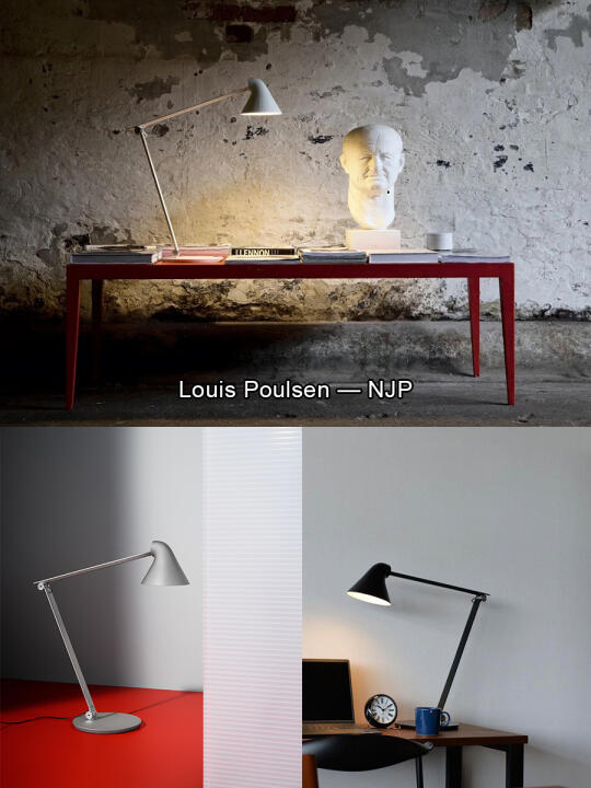 NJP台灯通过灯罩内部白色涂层反射,提供柔和无眩光光线。灯头设计符合人体工学,可灵活调节角度,优化光线分布。