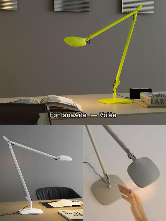 Volée台灯设计简约并融合了现代技术。灯头可调节,光线可精准投射不同角度,适合阅读使用。