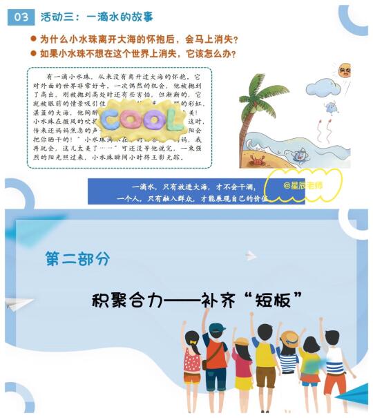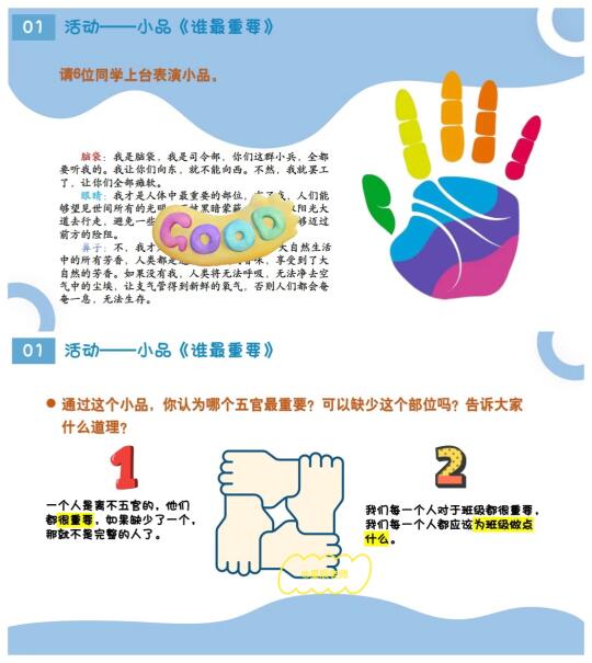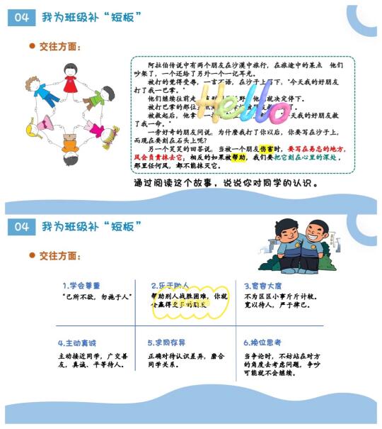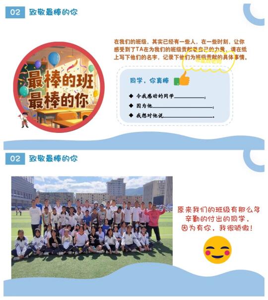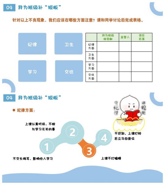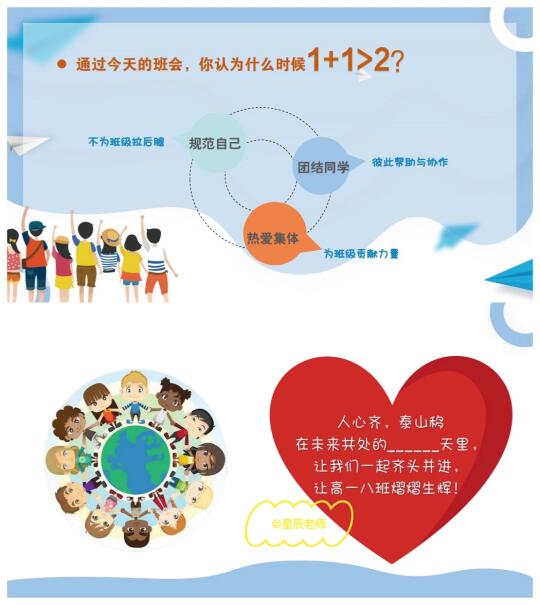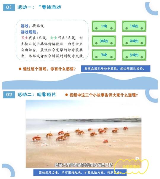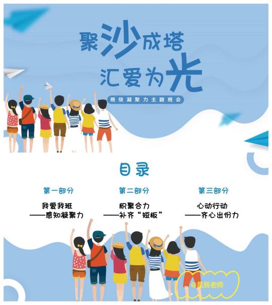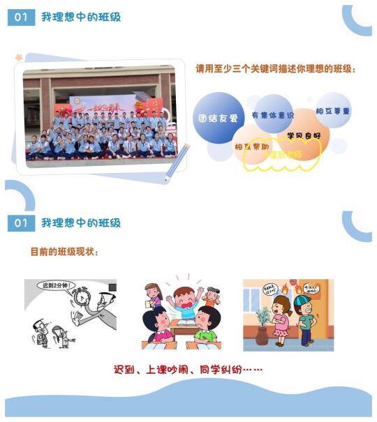 刚建立新的班级,很多同学都没有集体意识,开展活动也不积极,班级内部相互推诿,小团体不断😡上完这堂班会课,班级变得和谐又团结啦🥰 1️⃣我爱我班—感知凝聚力 2️⃣积聚合力—补齐“短板” 3️⃣心动行动—齐心出份力