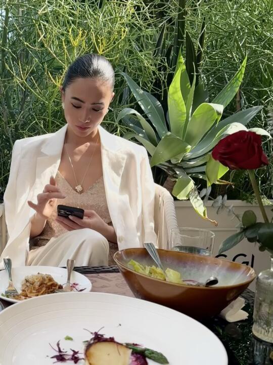 这一身look很适合现在的天气,面料是真丝的吗?看着很垂坠,很好看