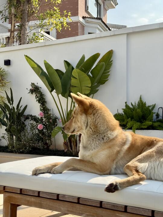 阿姨才刚把洗得干干净净的躺椅垫铺上,狗子第一时间躺下🤔要说会享受还得是它,我们好像都是在给它打工!