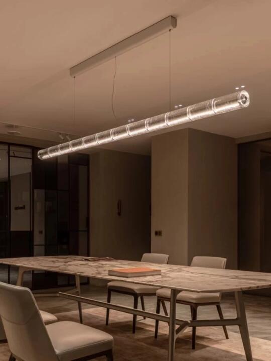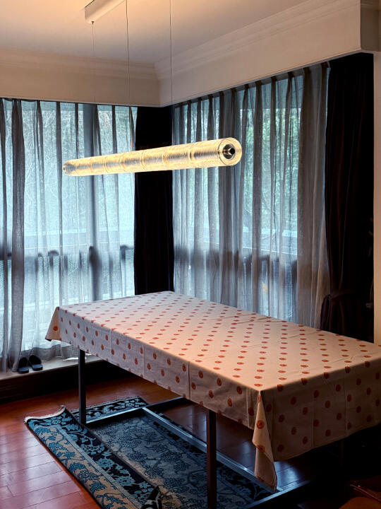 📏对于长桌照明,FLOS的这款长条吊灯是非常棒的选择,它有三种尺寸选择,满足180cm-300cm的长桌需求。