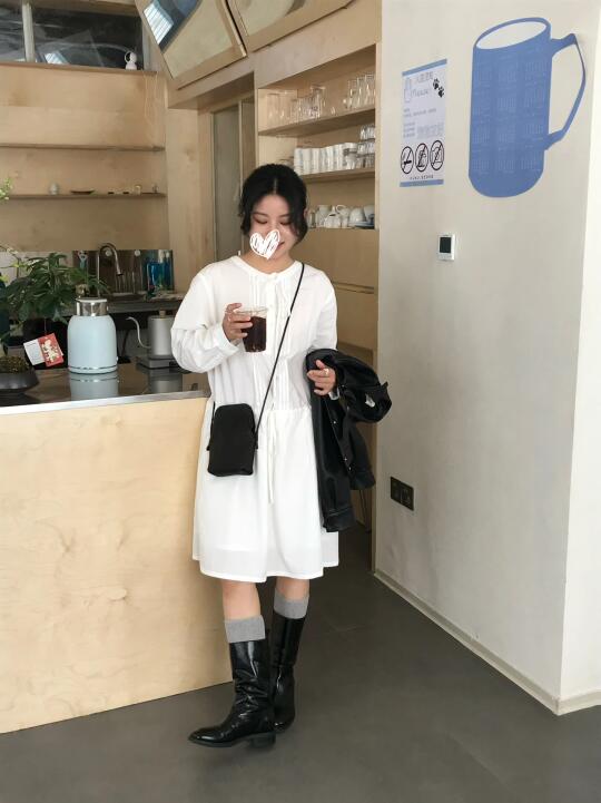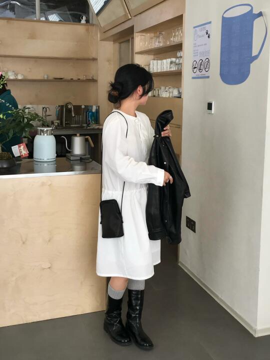 皮衣+小白裙 穿不腻真的穿不腻 -