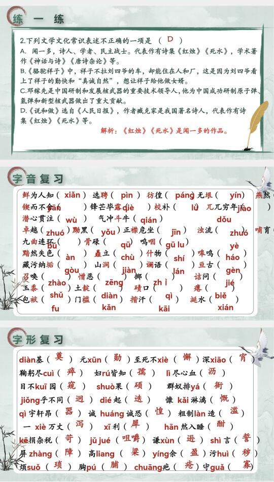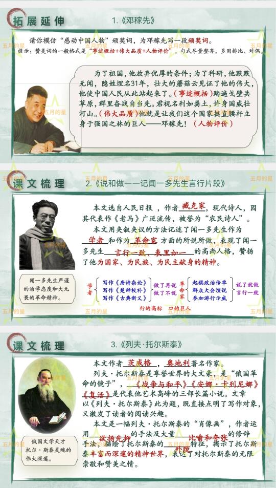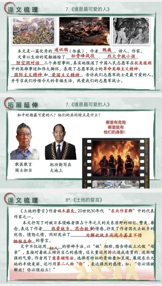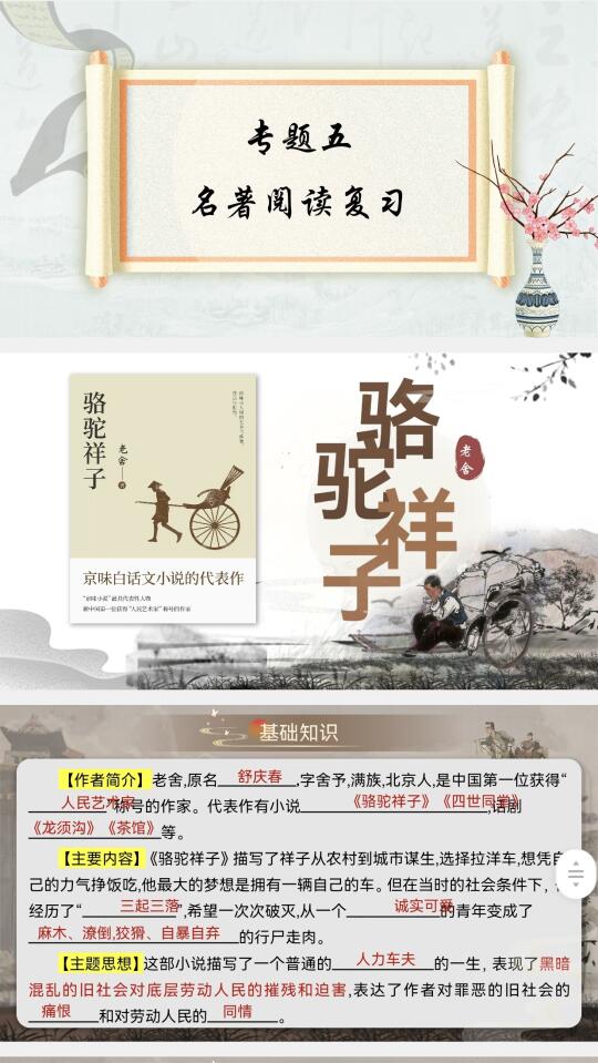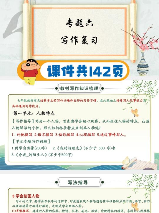 🌸课件详细到做了142页,基本上把想到的都呈现出来了,期末复习时“现代文阅读”板块会多做点。