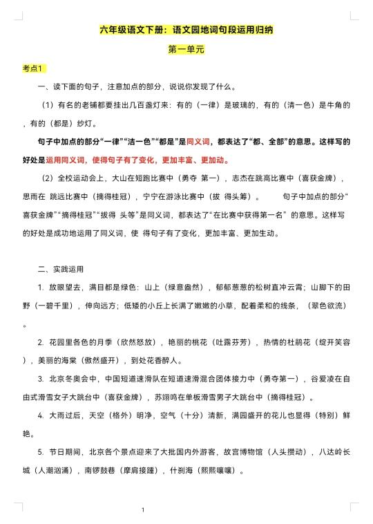 六下语文|语文园地词句段运用考点归纳