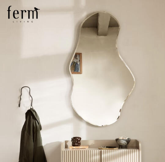 北欧湖泊穿衣镜通常采用异形设计,如丹麦进口的ferm LIVING Pond Mirror湖泊穿衣镜,其形状类似于不规则的湖泊,给人一种自然、灵动的感觉 ,适合作为装饰品提升卧室的美感