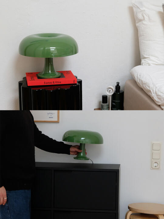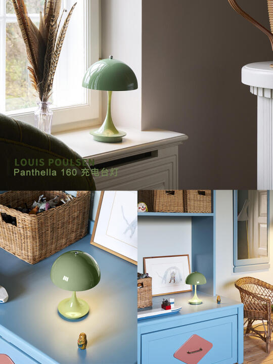 Panthella 160推出清新的绿色,光线温柔的像被经叶过滤过,充电设计让它成为露营、阳台、卧室的「移动小森林」。