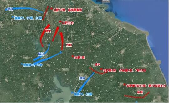集中我军22个团,围歼泗县桂军2个团。
