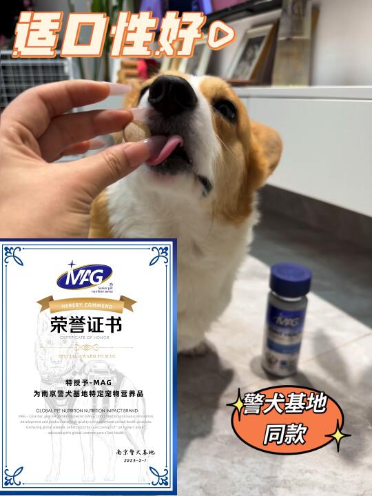 我家何不甜虽然已经4️⃣岁了!但它真的太好动了,看着它快乐的同时也很担心它的关节会出现问题。所以我在关节养护方面做了很多功课,也咨询了一些比较专业的朋友,MAG在宠物保养品方面口碑一直很好,还是警犬基地的同款!!!👮♂️🫡 最终我在朋友的墙裂安利下,选择了MAG关节生养护版。