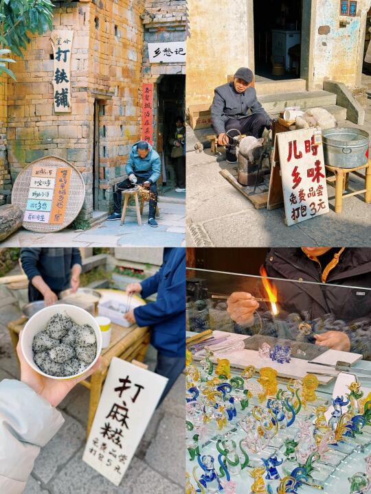 景区里每天还有特色民俗演出,可以沉浸式感受当地人的风土人情,例如打糍粑,非遗琉璃制作,爆米花炒米等唤醒乡愁记忆💕