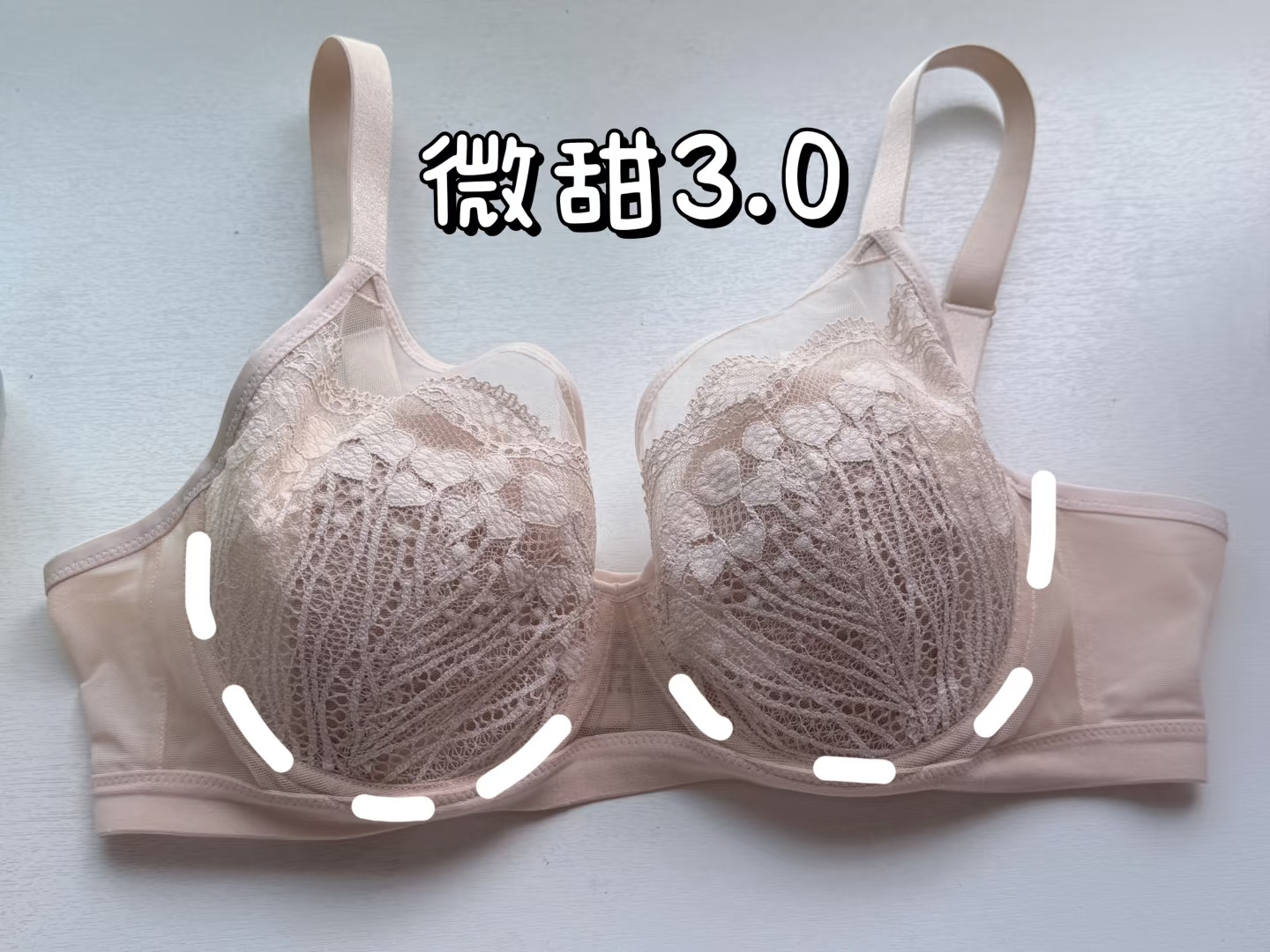 奶糖派家的老客户了,穿他们家好多年,感觉都很不错,微甜是其中最喜欢的一款了!大胸显小的效果非常明显,胸型也很圆润饱满,布料柔软透气,主要是颜值真的很高!!!内衣大胸显小微胖穿搭舒适内衣奶糖派微甜夏日内衣