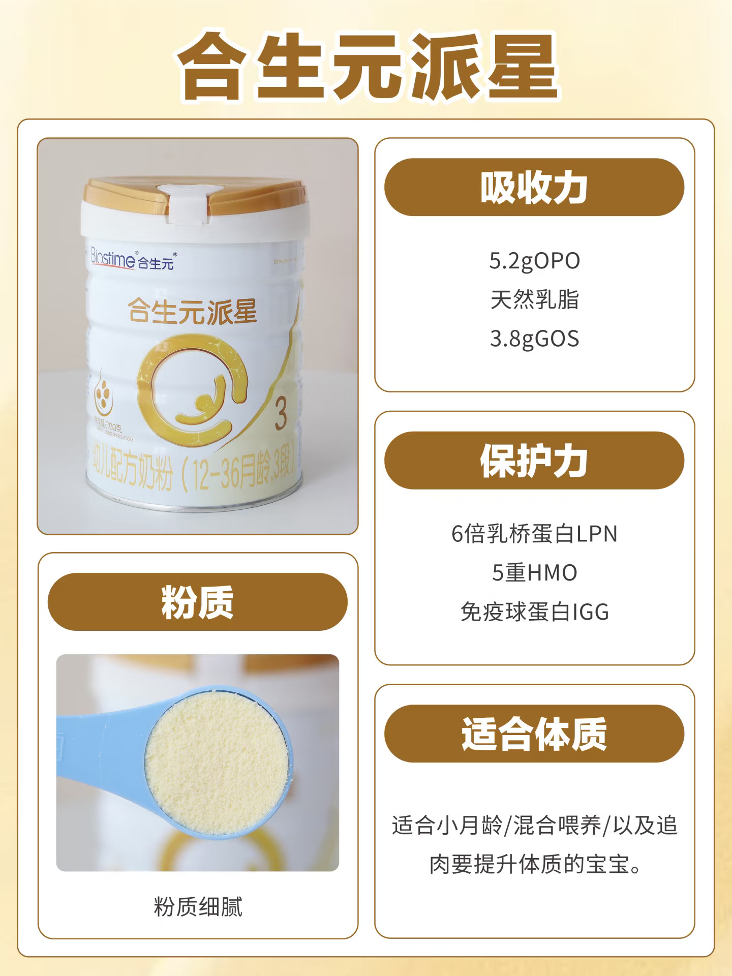 合生元派星:5.2gOPO+天然乳脂+3.8gGOS益生元,吸收力营养全面👍