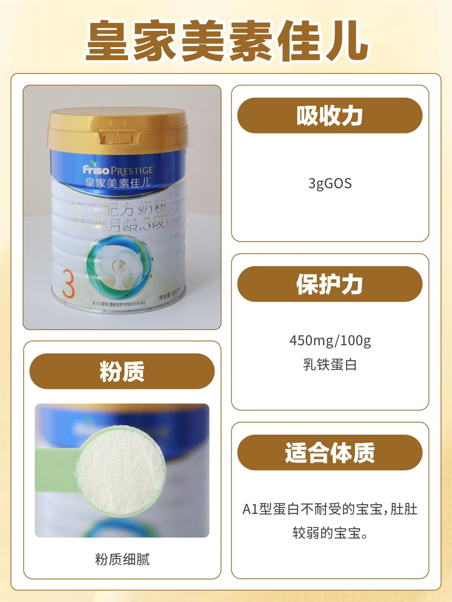 皇家美素佳儿:450mg/100g乳铁蛋白,乳铁蛋白含量高